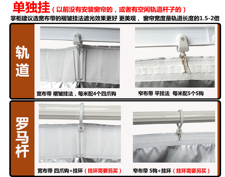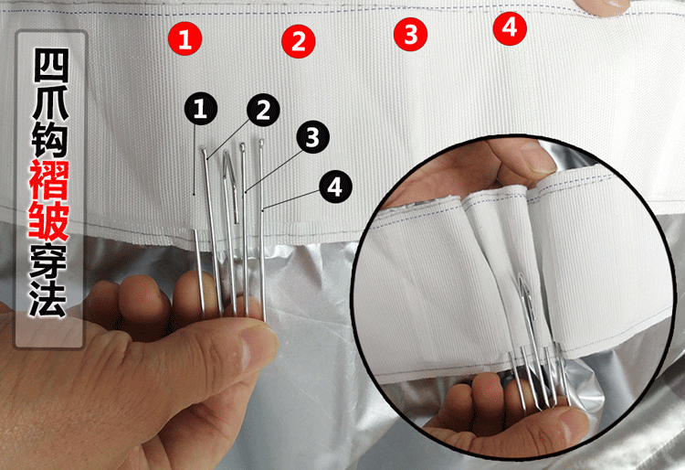 3. Широкий матерчатый ремень оснащен четырехзахватным крючком и имеет складки при подвешивании. Рекомендуется, чтобы ширина шторы была примерно в два раза больше длины карниза или римского стержня (например, для окна шириной 1 метр используется штора шириной 2 метра).