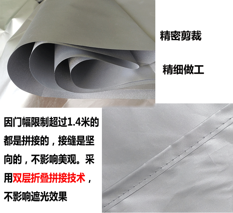 4. Из-за ограничения ширины все двери шириной более 1,7 метра сращиваются. Мы используем технологию вертикального двухслойного фальцевого сращивания, чтобы стыки не ухудшали внешний вид и светозащитный эффект.