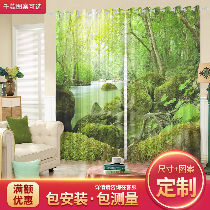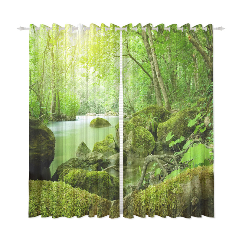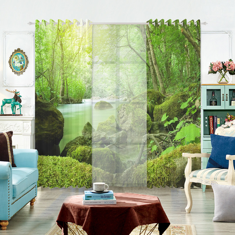Пользовательская занавеска ткани, девственное лес, зеленое дерево, пейзажная сцена, экрана занавес