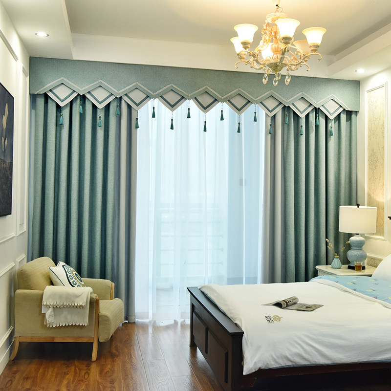 | Цвет: | Сине-серая двухцветная сращенная штора, Чисто белая шифоновая пряжа высокой плотности., Двухслойная штора сине-серого цвета в стиле бутик |