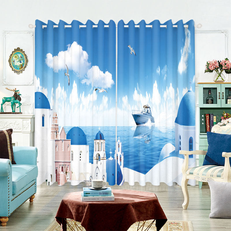 Свежая современная ткань для гостиной, синяя штора, стиль, простой и элегантный дизайн