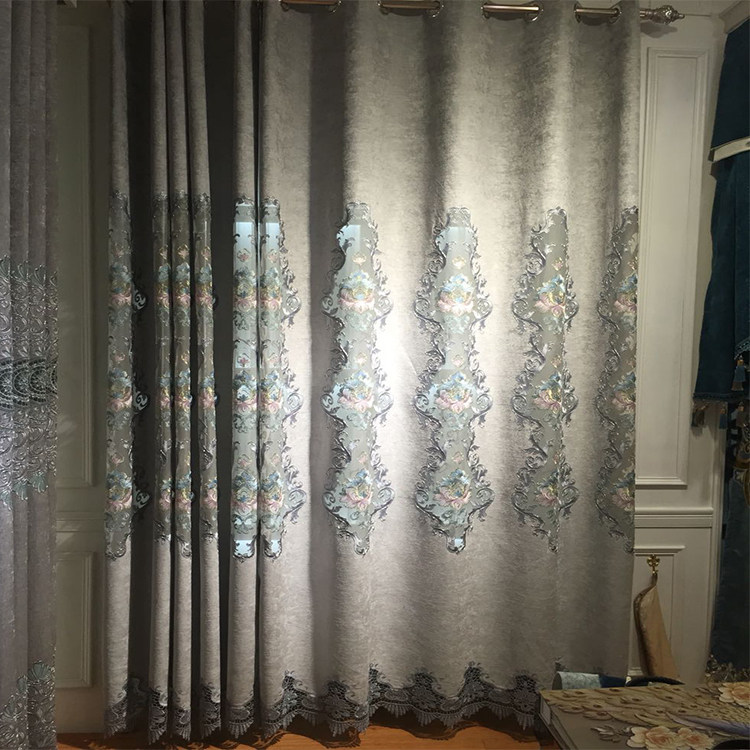 2020 новый европейский стиль новый китайский стиль серая вышивка синель простая гостиная кабинет эркер готовая продукция от пола до потолка