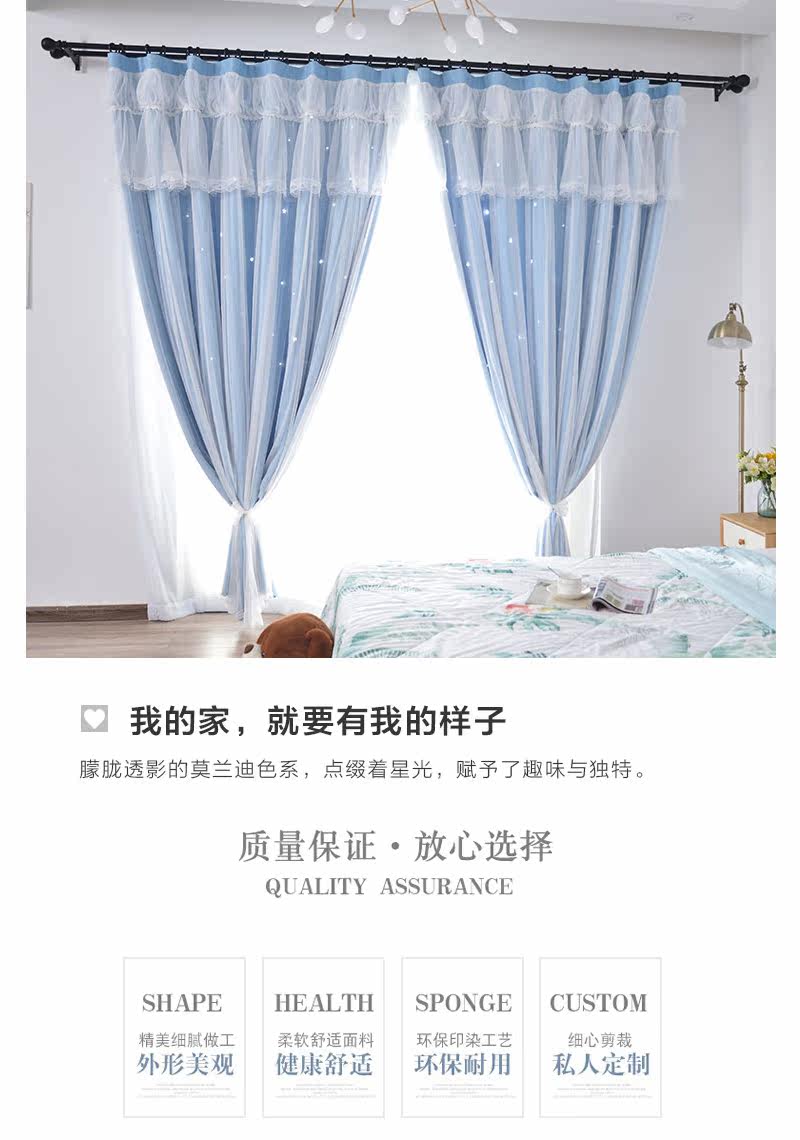 Douyin net Red Double -слоя все -ин -in -princess Wind Shading Hollow Star 19 Новая гостиная спальня спальня для спальни бухто