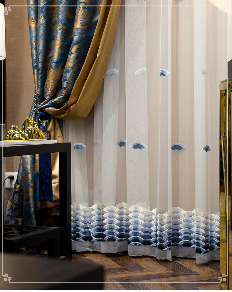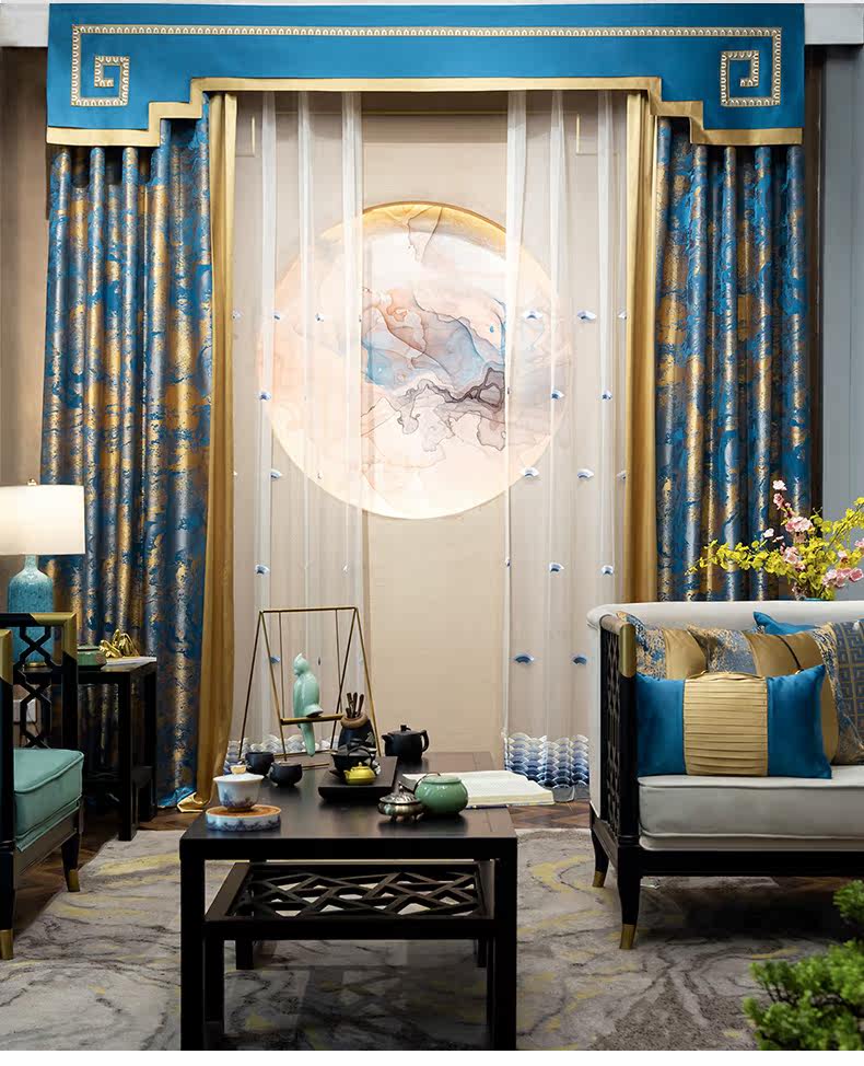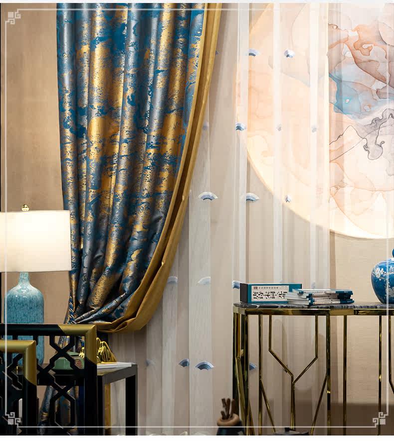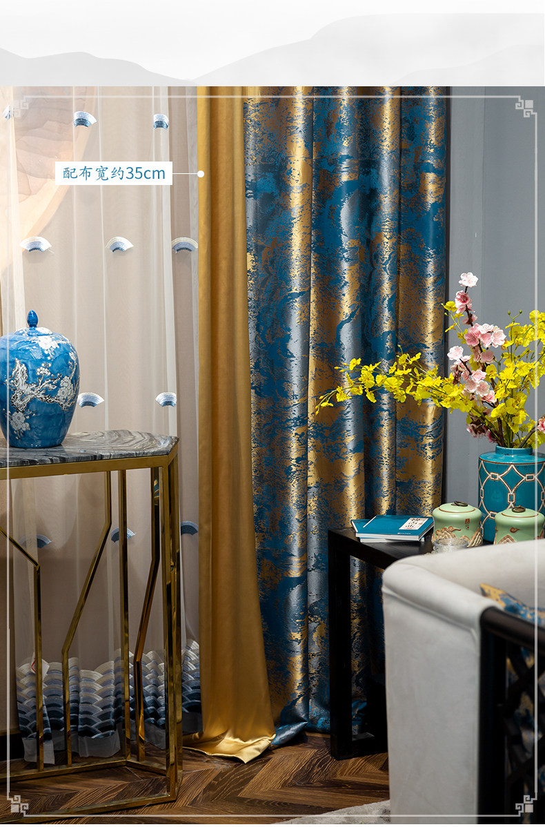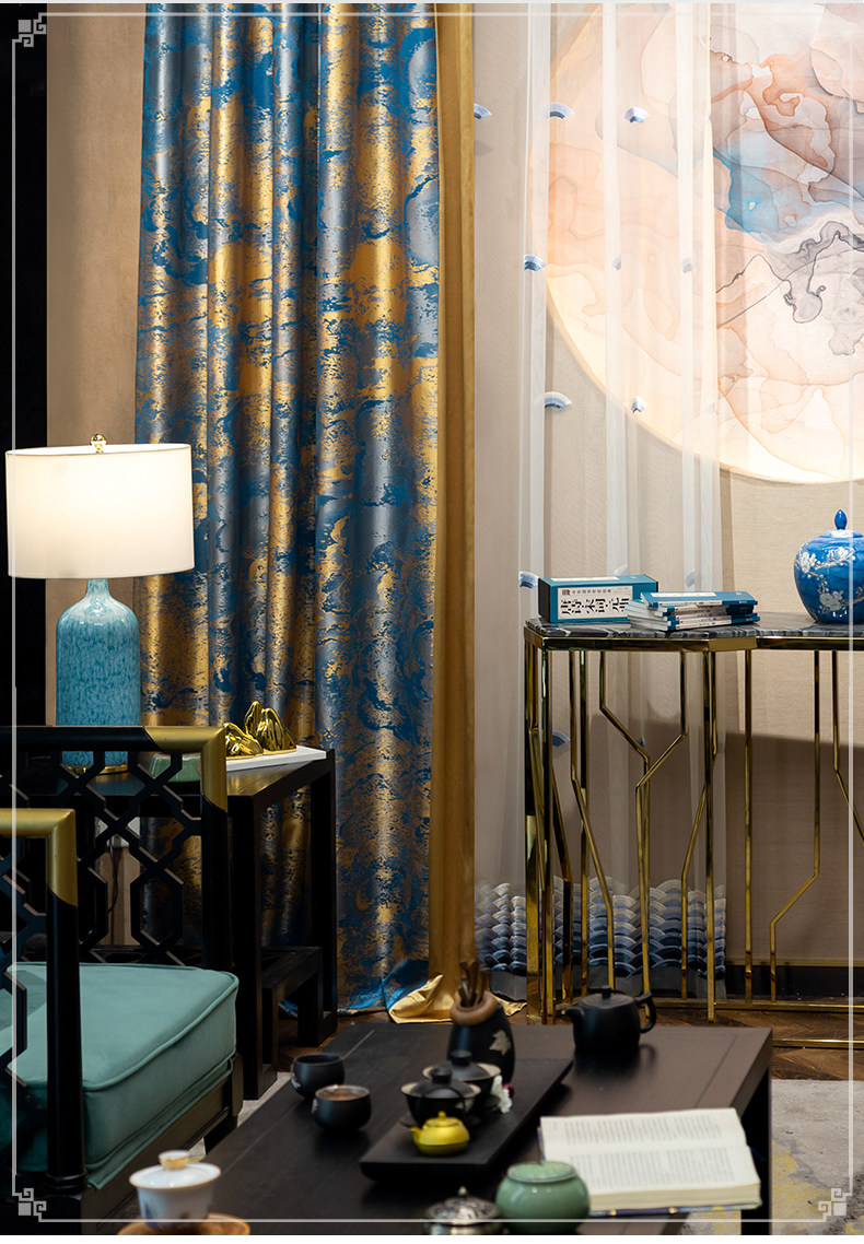 Синяя ткань для гостиной, ретро элитная вилла для спальни, штора, китайский стиль, делается под заказ