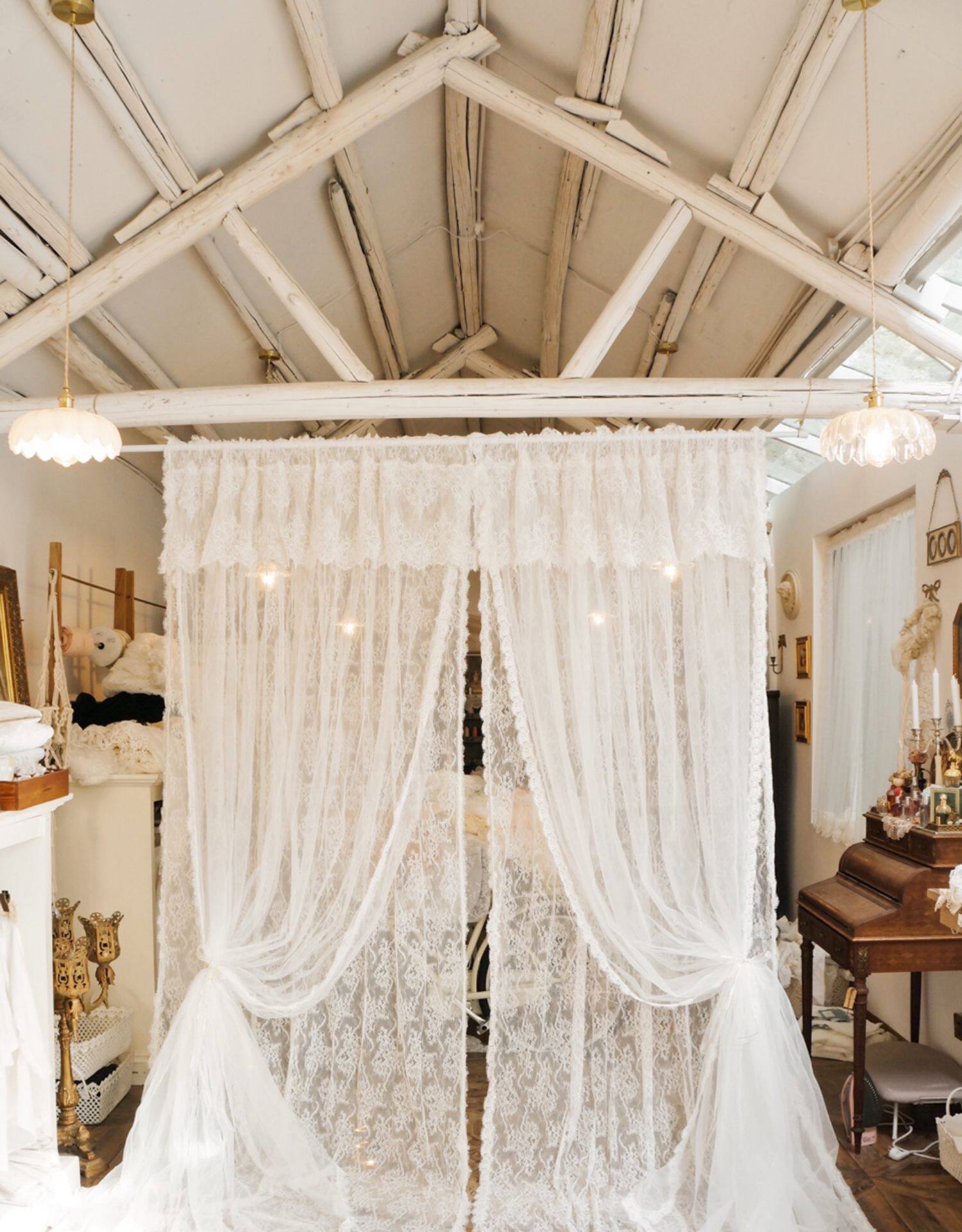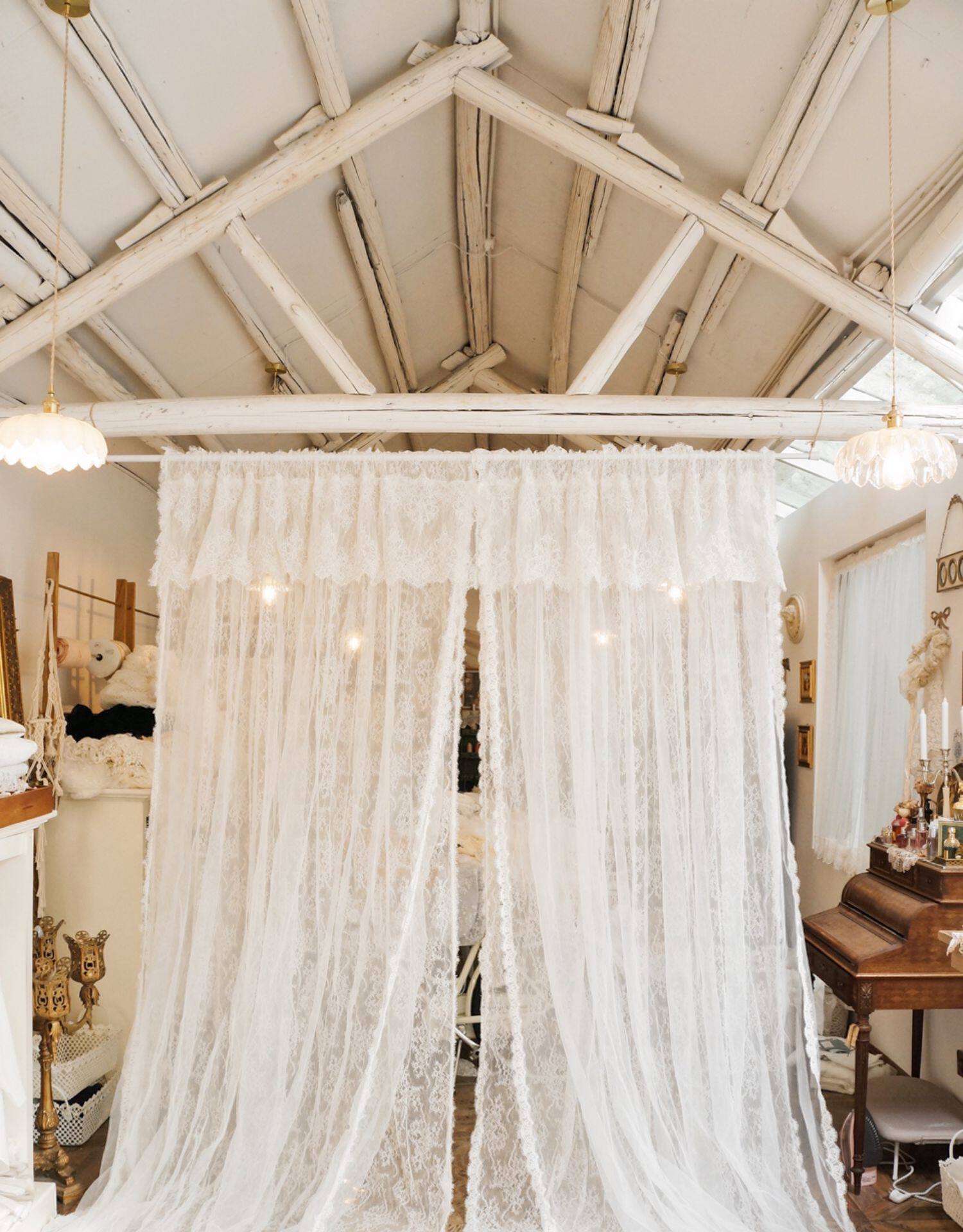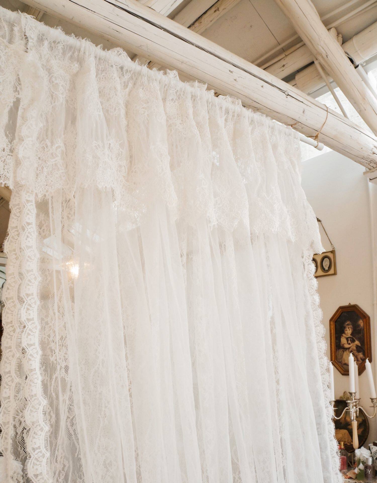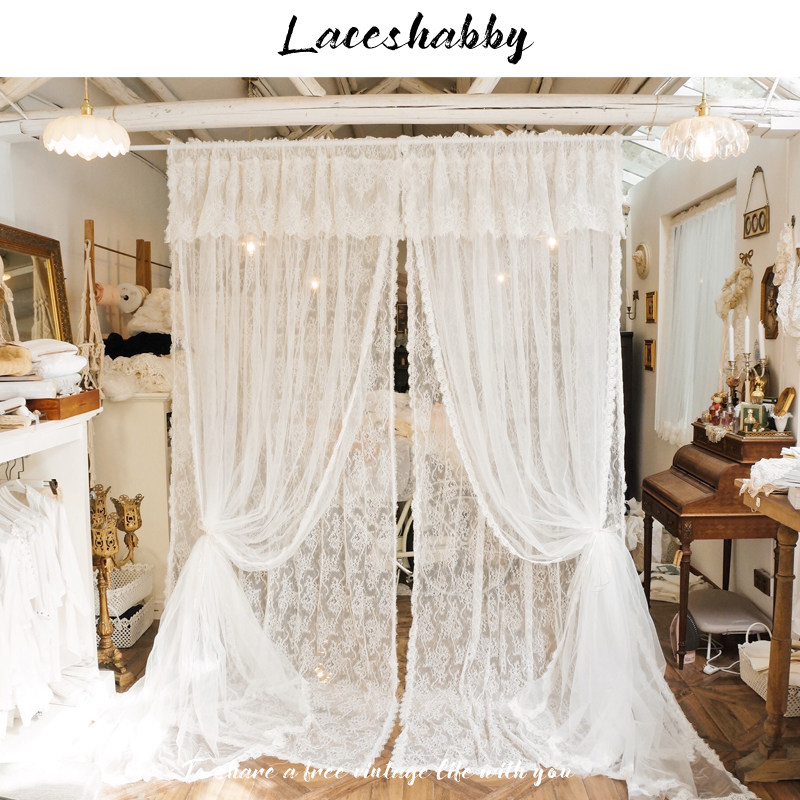 Кружевная белая ретро свежая ткань, штора, европейский стиль, цветочный принт