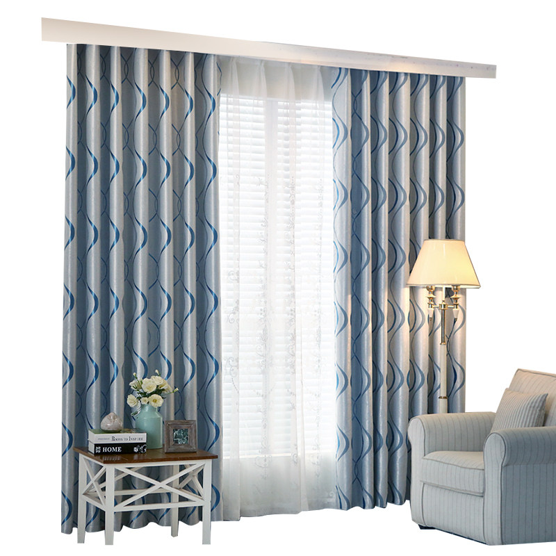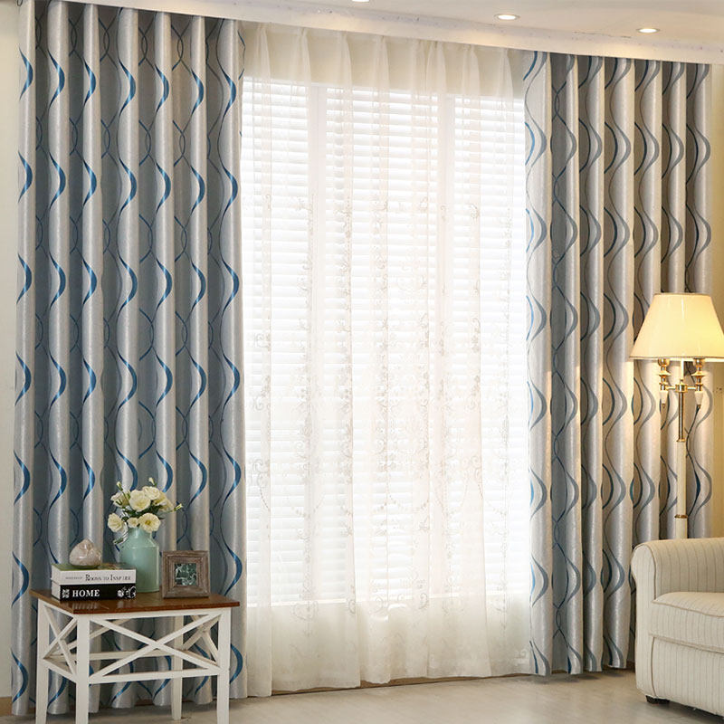Простые полосатые северные европейские волны волнистых штор, готовая крючка, пробивая легкая роскошная спальня, заливная залива, гостиная, посадочная дверь
