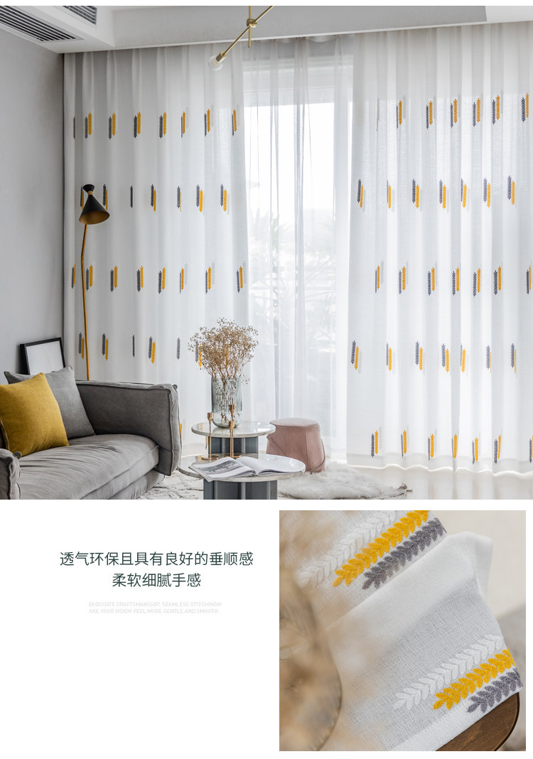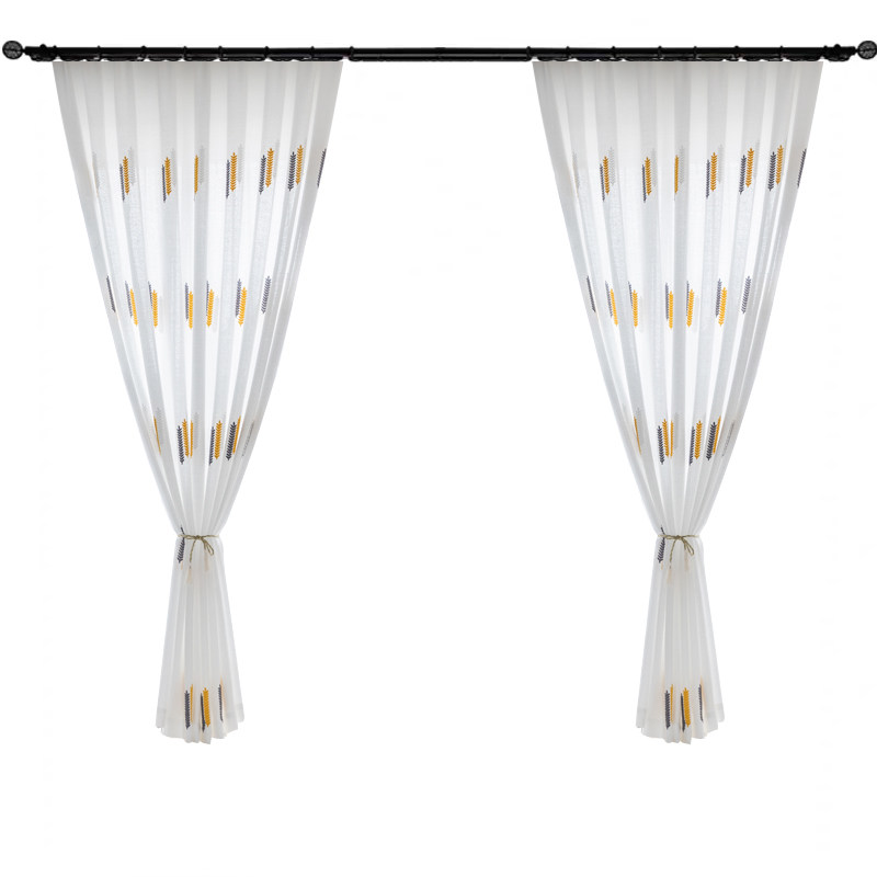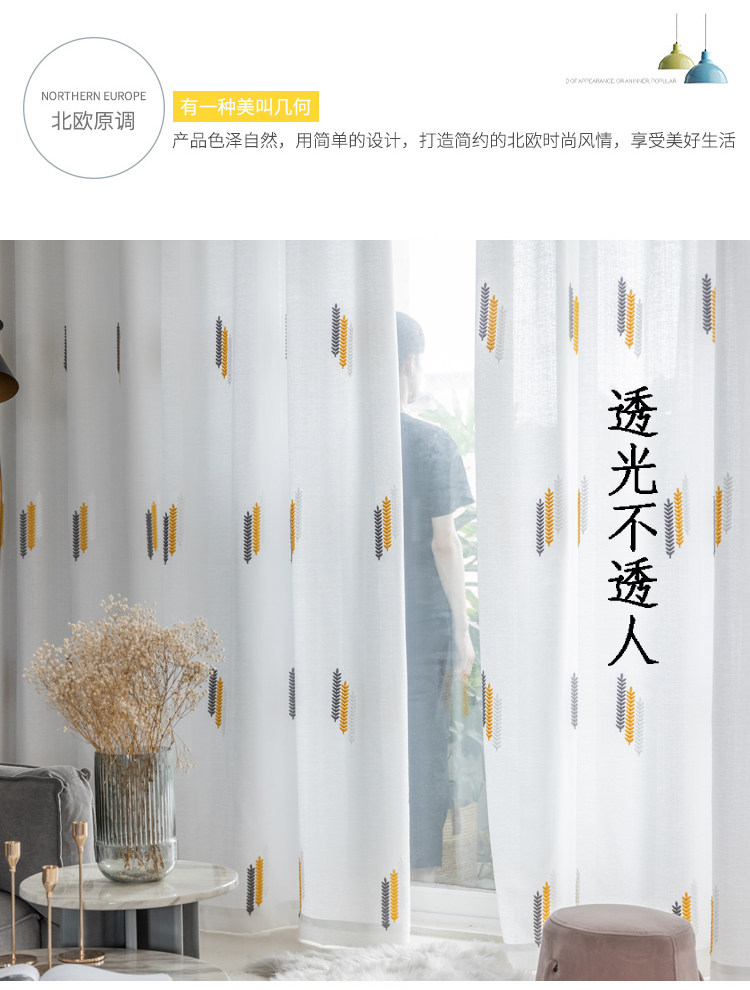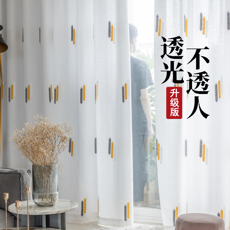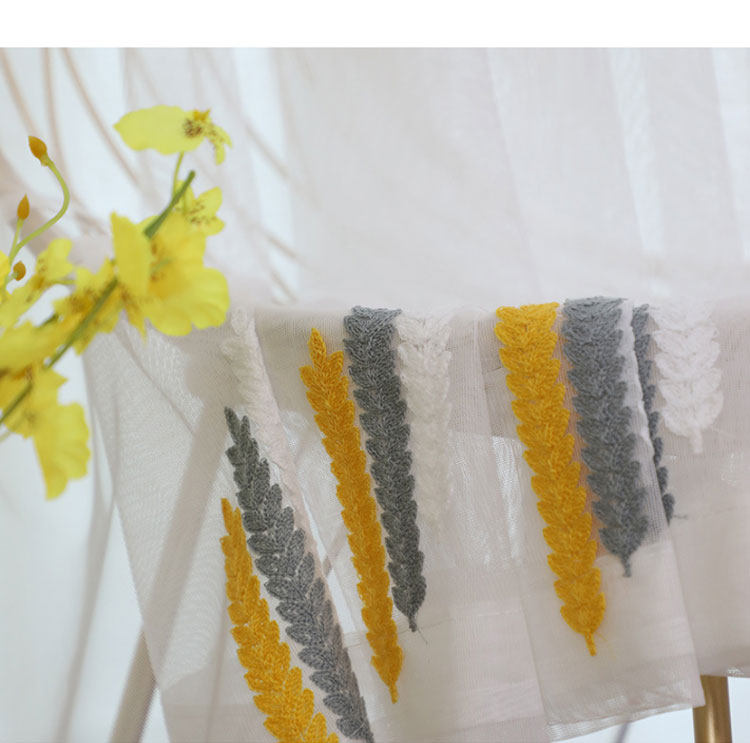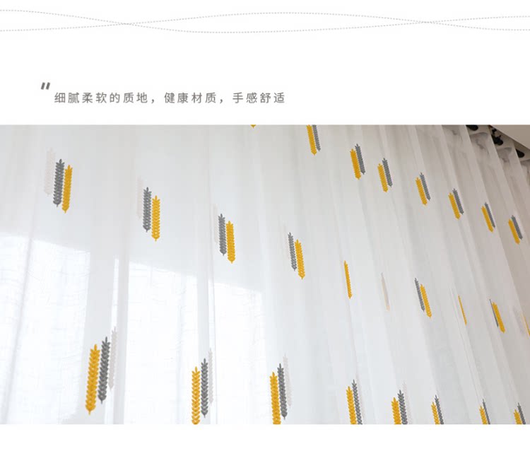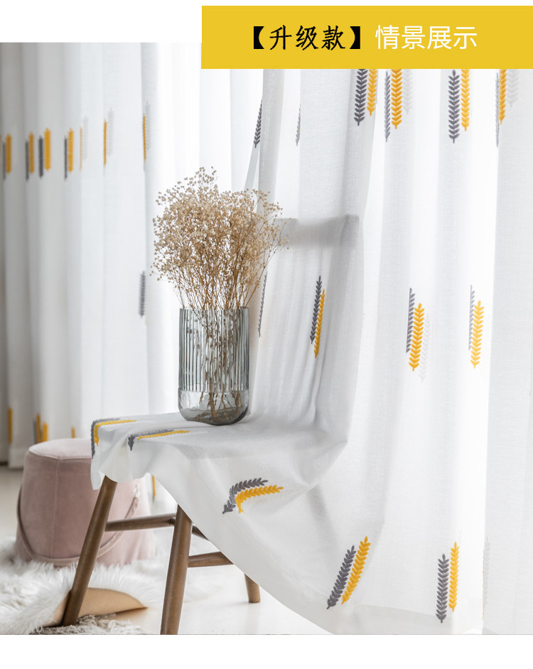Простая марлевая занавеска в скандинавском стиле для гостиной, спальни, эркера, белая марля, светонепроницаемая марля для балкона, пшеничная колосья, вышивка, готовая оконная ширма