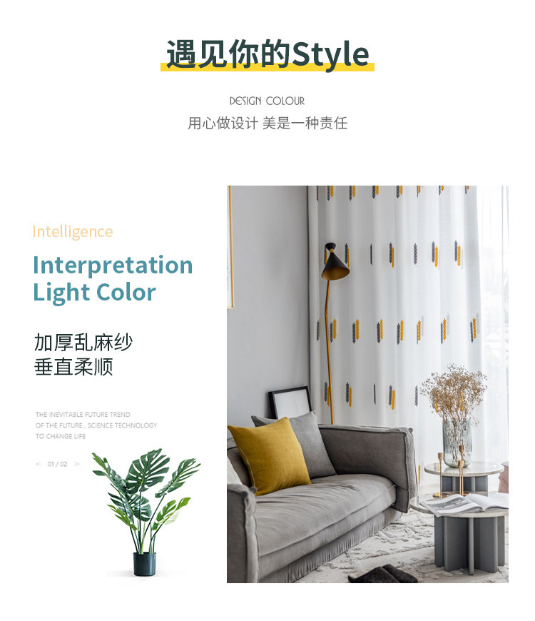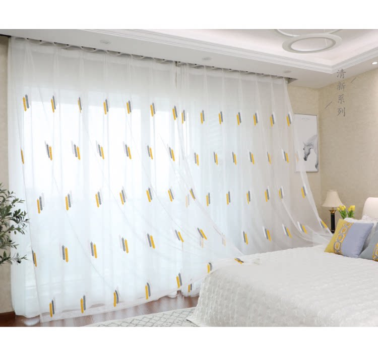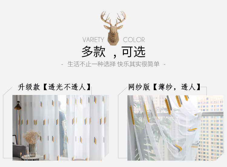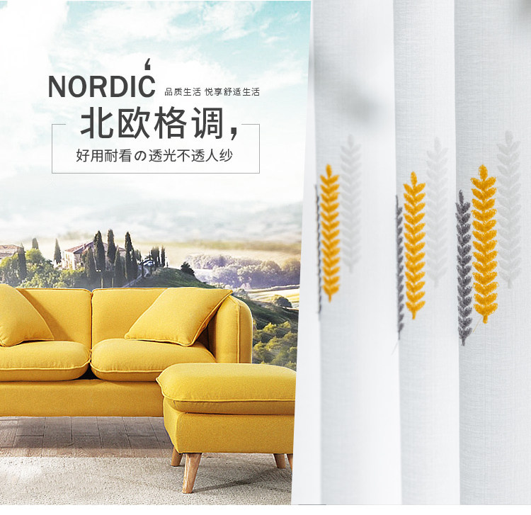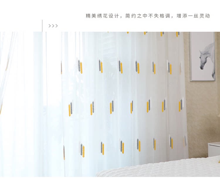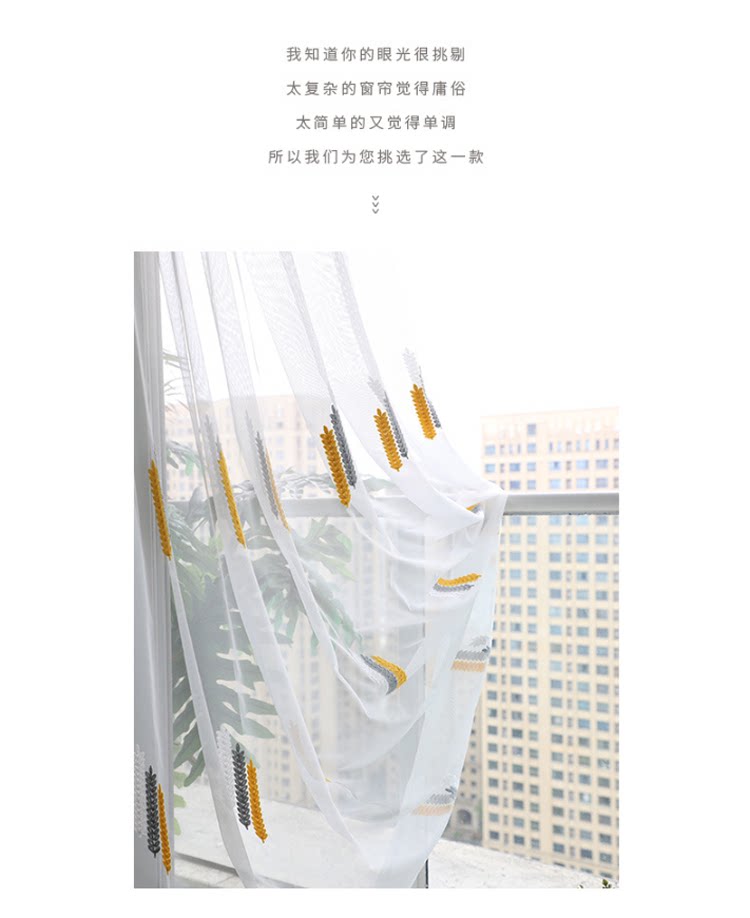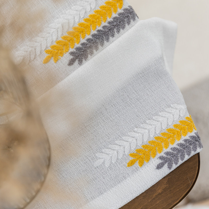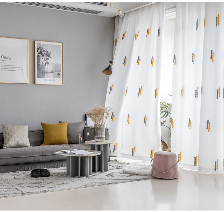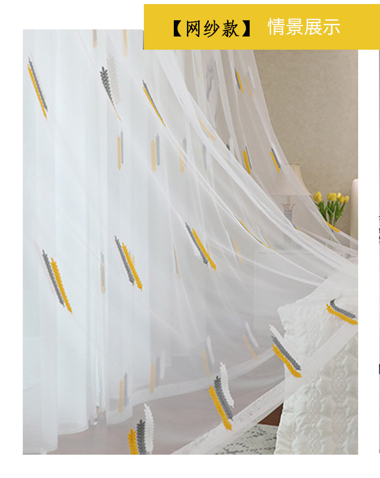 Простая марлевая занавеска в скандинавском стиле для гостиной, спальни, эркера, белая марля, светонепроницаемая марля для балкона, пшеничная колосья, вышивка, готовая оконная ширма