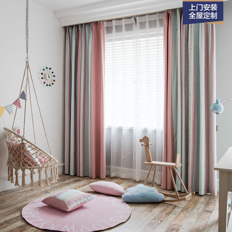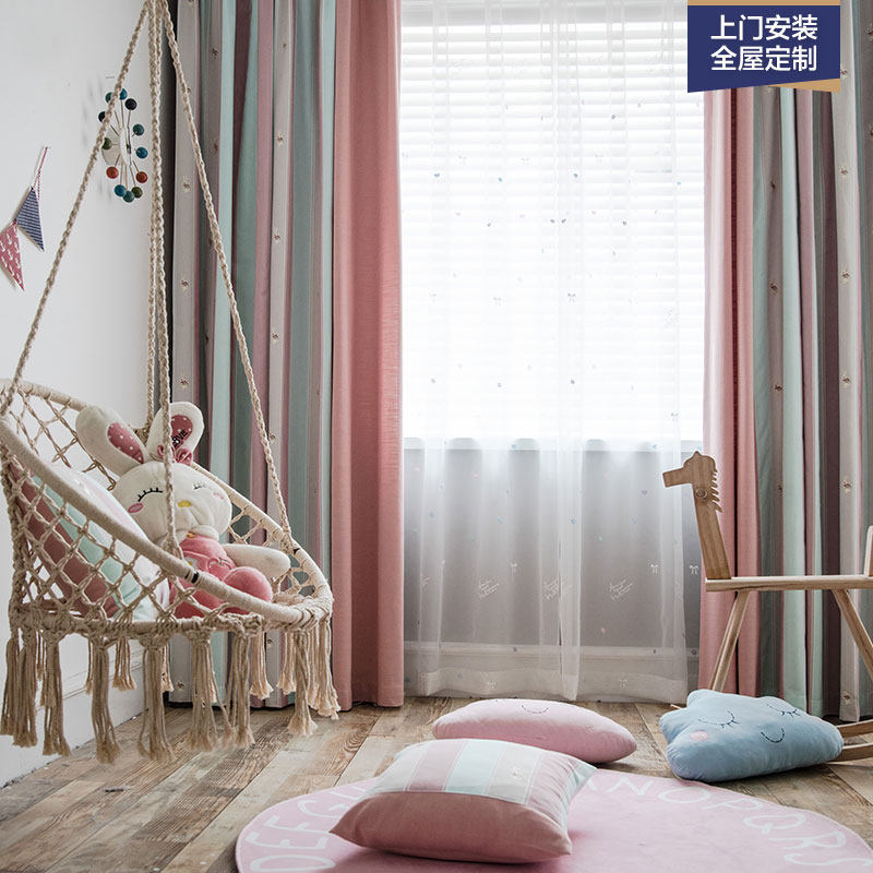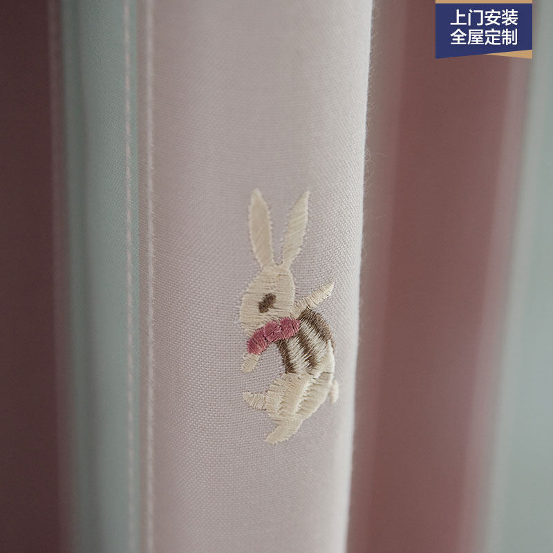 Корейский мультяшный розовый кролик, розовая ткань для принцессы для спальни, из хлопка и льна, с вышивкой
