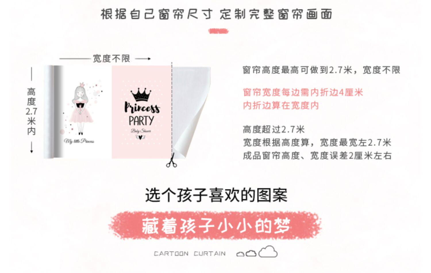 Мультяшная детская ткань, штора, розовый наряд маленькой принцессы, делается под заказ