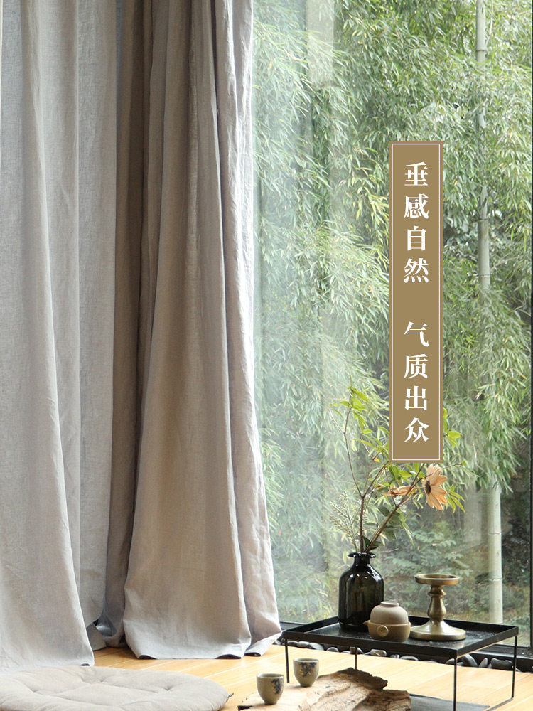 Этот оригинальный индивидуальный цвет чистый натуральный льняный светло -серый занавес в японском стиле и занавесу для чайной чай