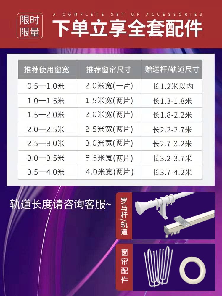 | Размер: | [Удлинитель, римский стержень, трек] Замечания или свяжитесь с обслуживанием клиентов, чтобы выбрать один, Набор из двух частей шириной 1,5 метра*Тип крючка высоты 2,7 метра (отправьте 1,3-1,8 метра орбиты), Один набор из двух элементов шириной 2,0 метра*Тип крючка высоты 2,7 метра (отправьте 1,8-2,2 метра орбиты), Набор из двух элементов шириной 2,5 метра*Тип крючка высоты 2,7 метра (отправьте орбиту 2,2-2,7 метра), Набор из двух частей шириной 3,0 метра*Тип крючка высоты 2,7 метра (отправьте 2,7-3,2 метра орбиты), Один набор из двух элементов шириной 3,5 метра*Тип крючка высоты 2,7 метра (трека отправить 3,2-3,7 метра), Один набор из двух частей шириной 1,5 метра*высотой 2,7 метра (отправьте 1,3-1,8 метра римского стержня), Набор из двух частей шириной 2,0 метра*высокий 2,7 метра типа перчарования (отправьте 1,8-2,2 метра римского стержня), Набор из двух частей шириной 2,5 метра*высокий 2,7 метра удара (отправьте 2,2-2,7 метра римского стержня), Набор из двух частей шириной 3,0 метра*высотой 2,7 метра (отправьте 2,7-3,2 метра римских стержней), Набор из двух частей шириной 3,5 метра*высокий 2,7 метра удара (отправить 3,2-3,7 метра римского стержня), Для пользовательского размера, пожалуйста, обслуживание клиентов [фавориты и покупка предпочтительной доставки] |