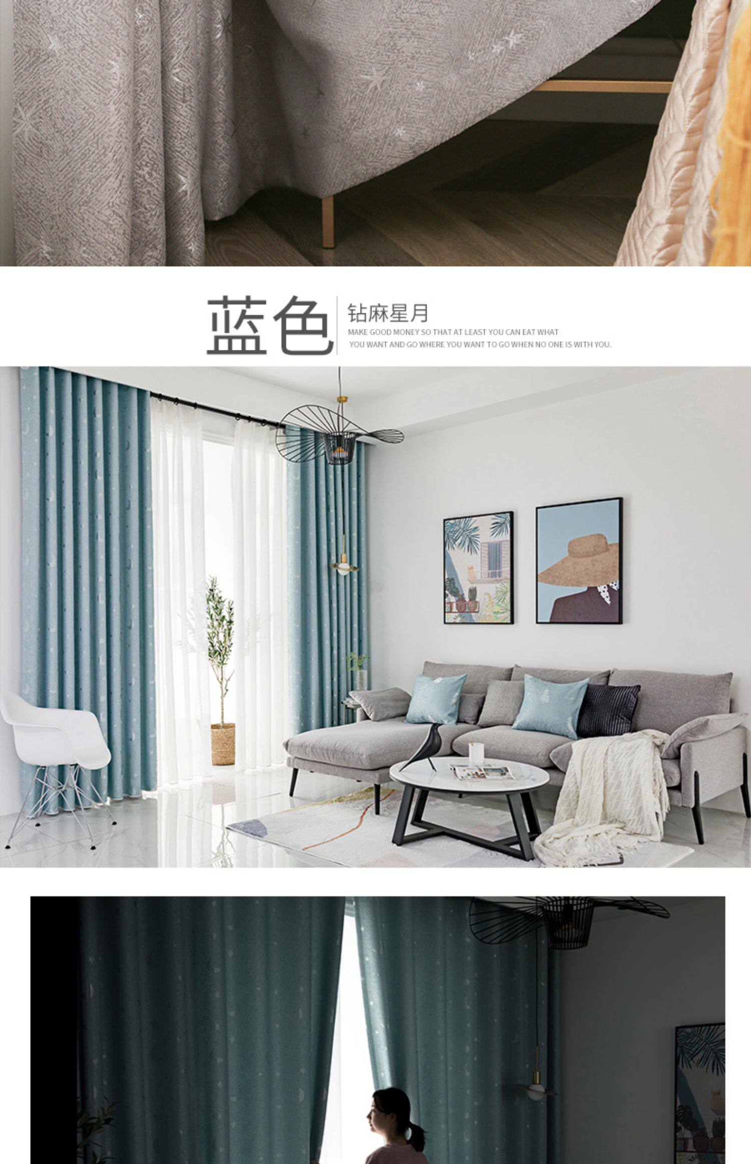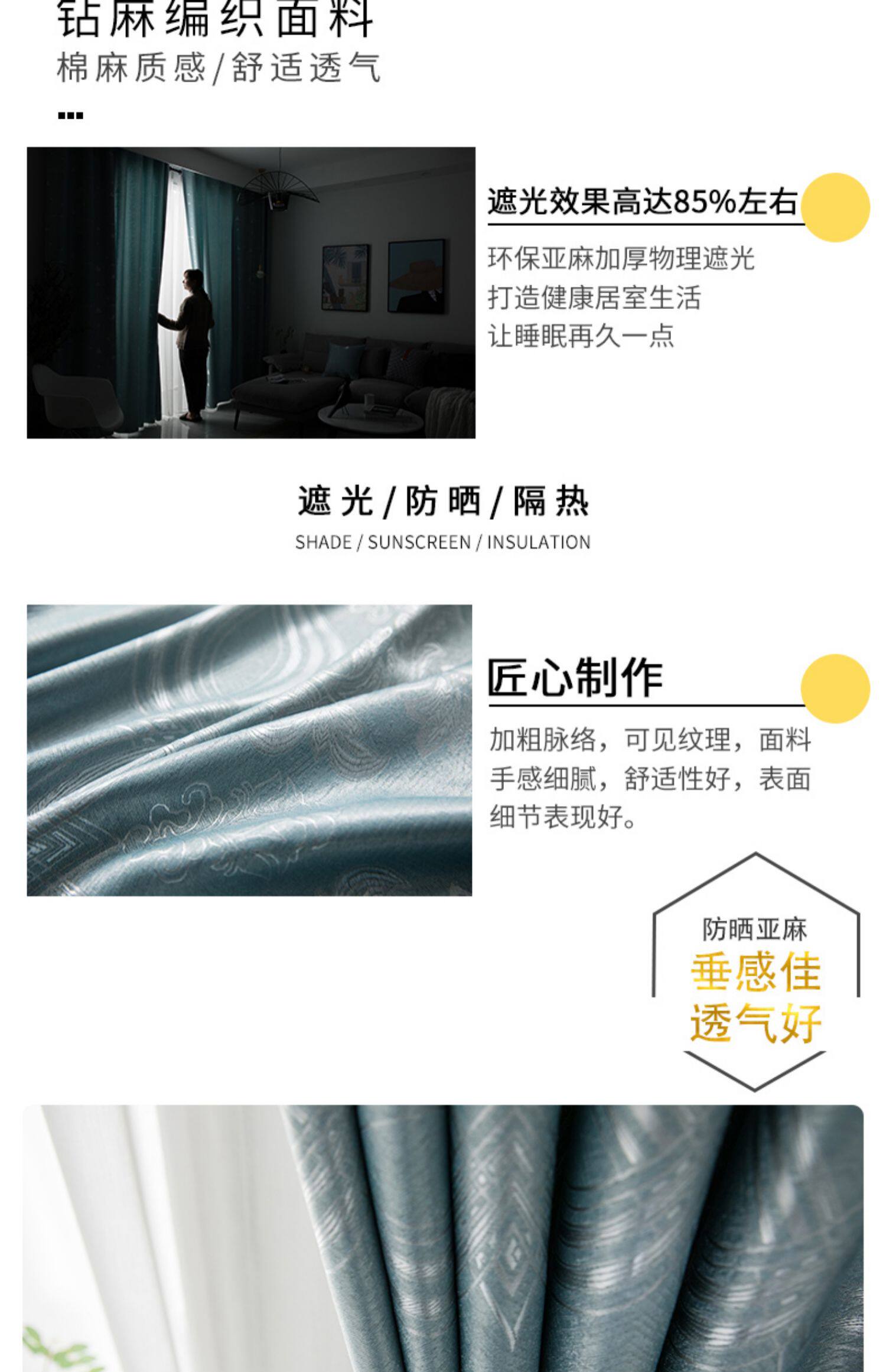 Скандинавская ткань для гостиной, из хлопка и льна, увеличенная толщина, простой и элегантный дизайн, защита от солнца, делается под заказ