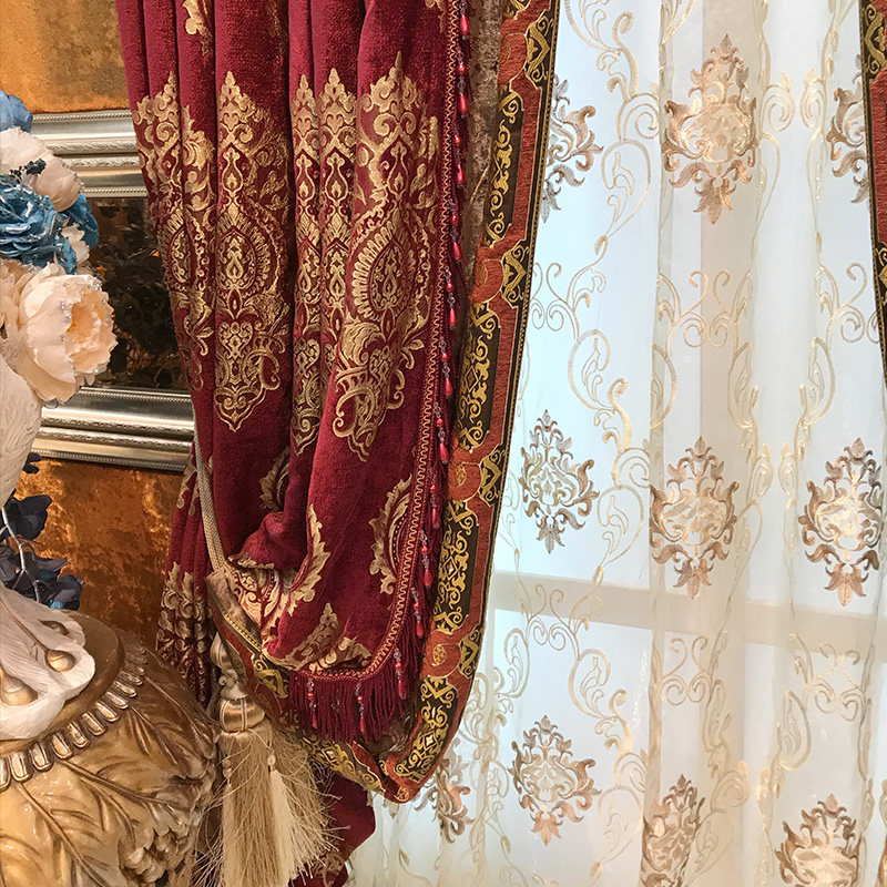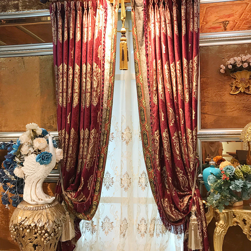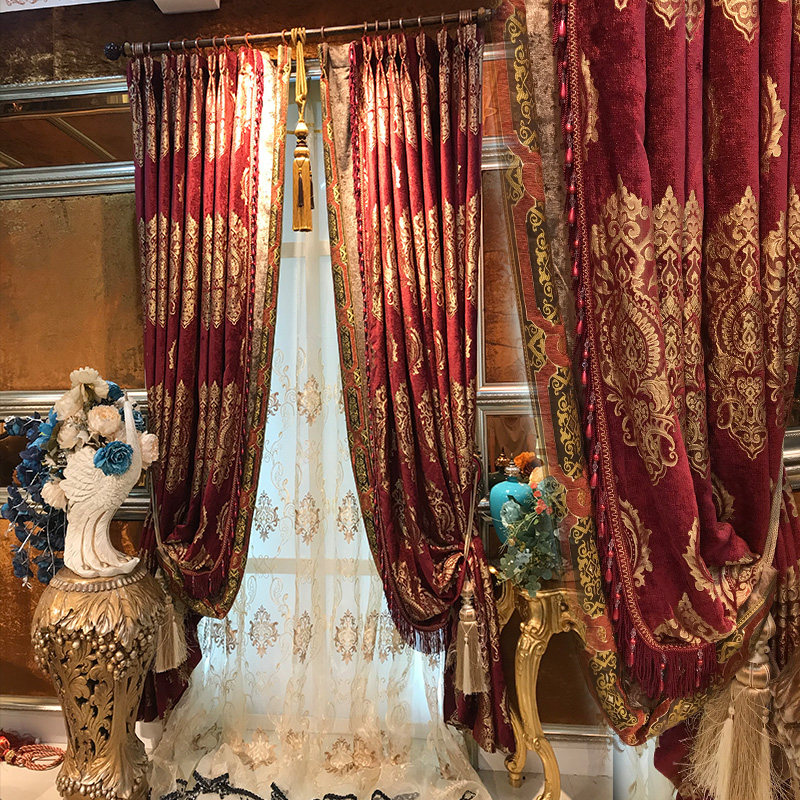 Ткань для гостиной, классическая красная цветная вилла для спальни, штора, делается под заказ, европейский стиль, в американском стиле
