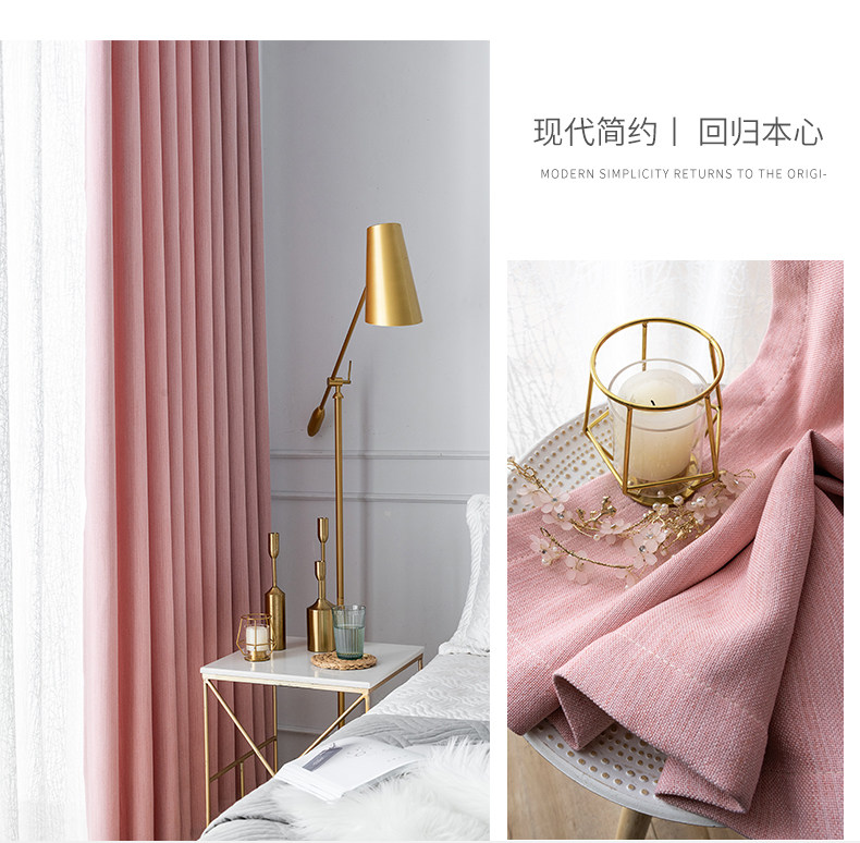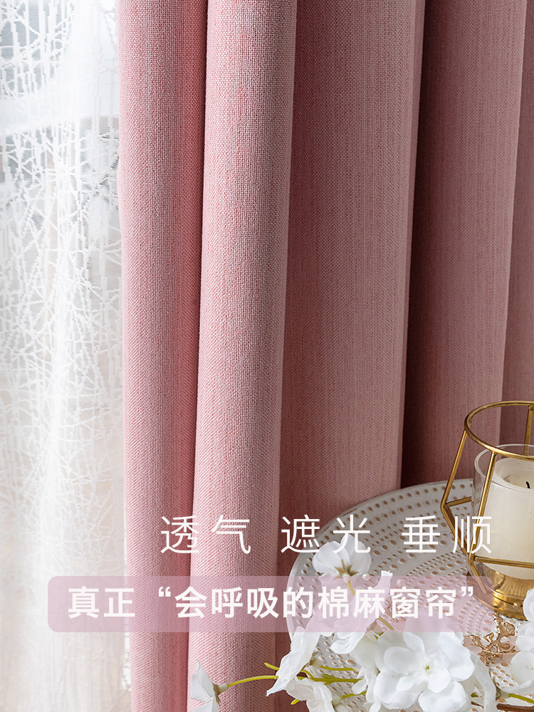 Розовая современная цветная элитная скандинавская ткань для гостиной, простой и элегантный дизайн, из хлопка и льна