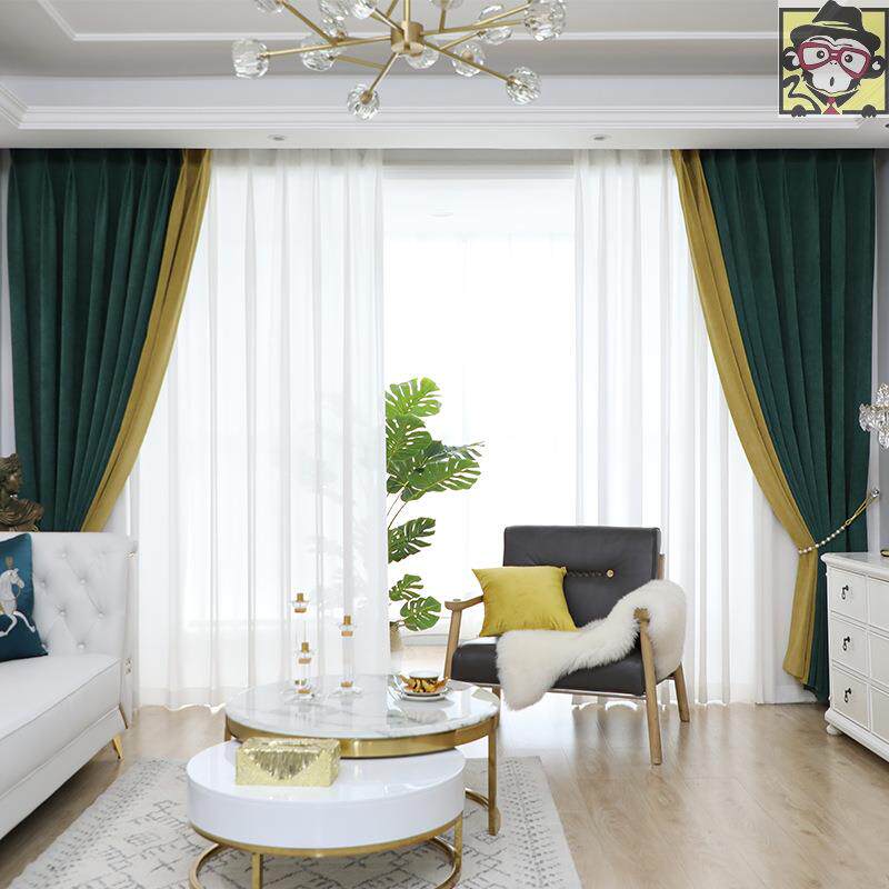 Скандинавская зеленая штора, цветной ткань для полировки для гостиной, простой и элегантный дизайн, легкий роскошный стиль