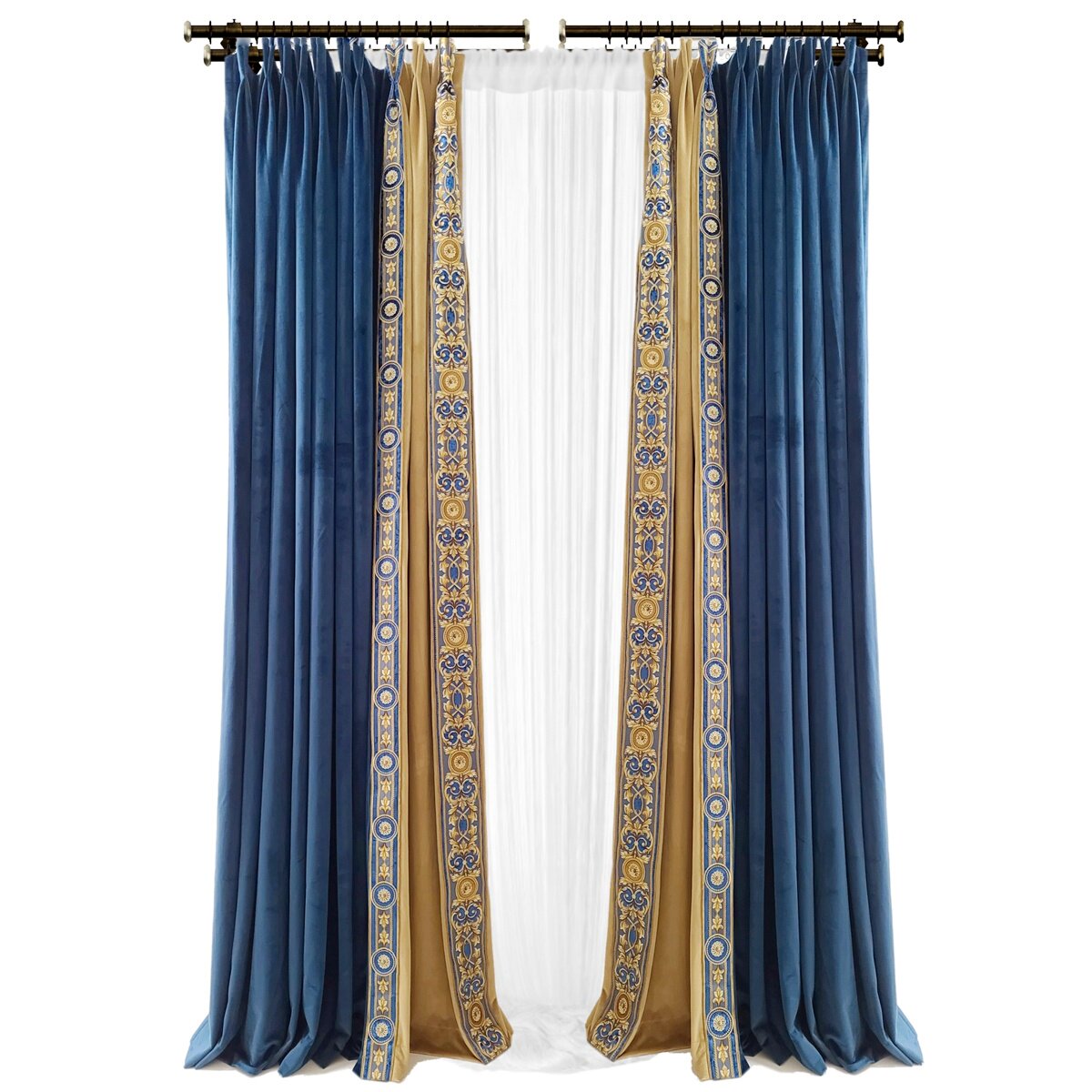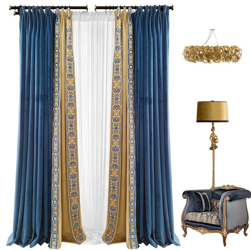Ретро бархатная ткань для гостиной, роскошная синяя вилла для спальни, в американском стиле, с вышивкой, французский стиль, европейский стиль