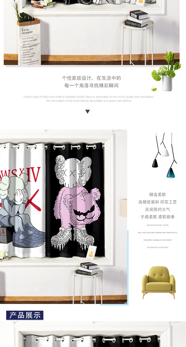 Прилив мультфильм мультфильм Бесплатный полюс Изоляция тепловая делома занавес детская комната спальня гостиная гостиная гостиная балконы перегородки.