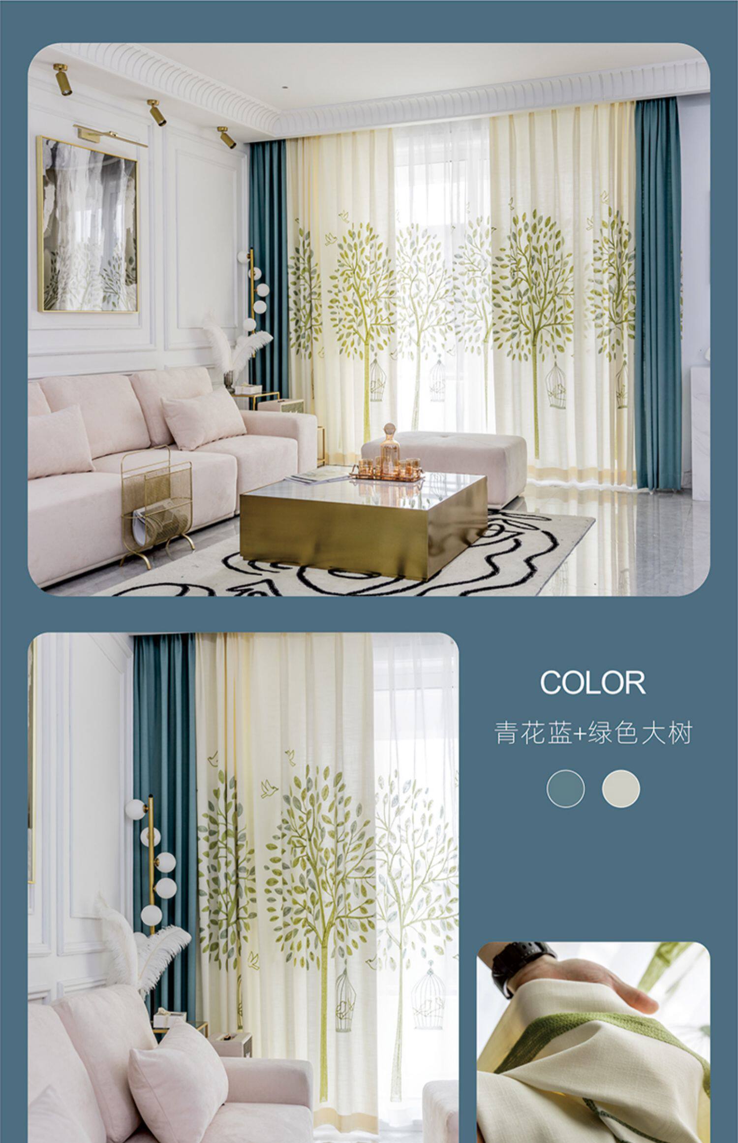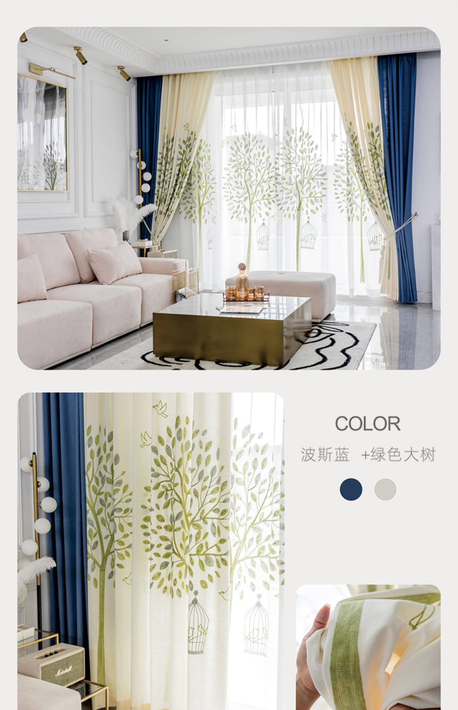 Скандинавская синяя свежая ткань для гостиной, простой и элегантный дизайн