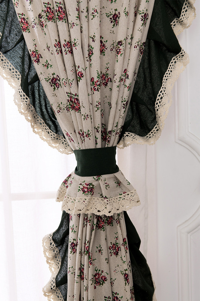 Зеленая ретро сельская ткань, в американском стиле, цветочный принт, из хлопка и льна