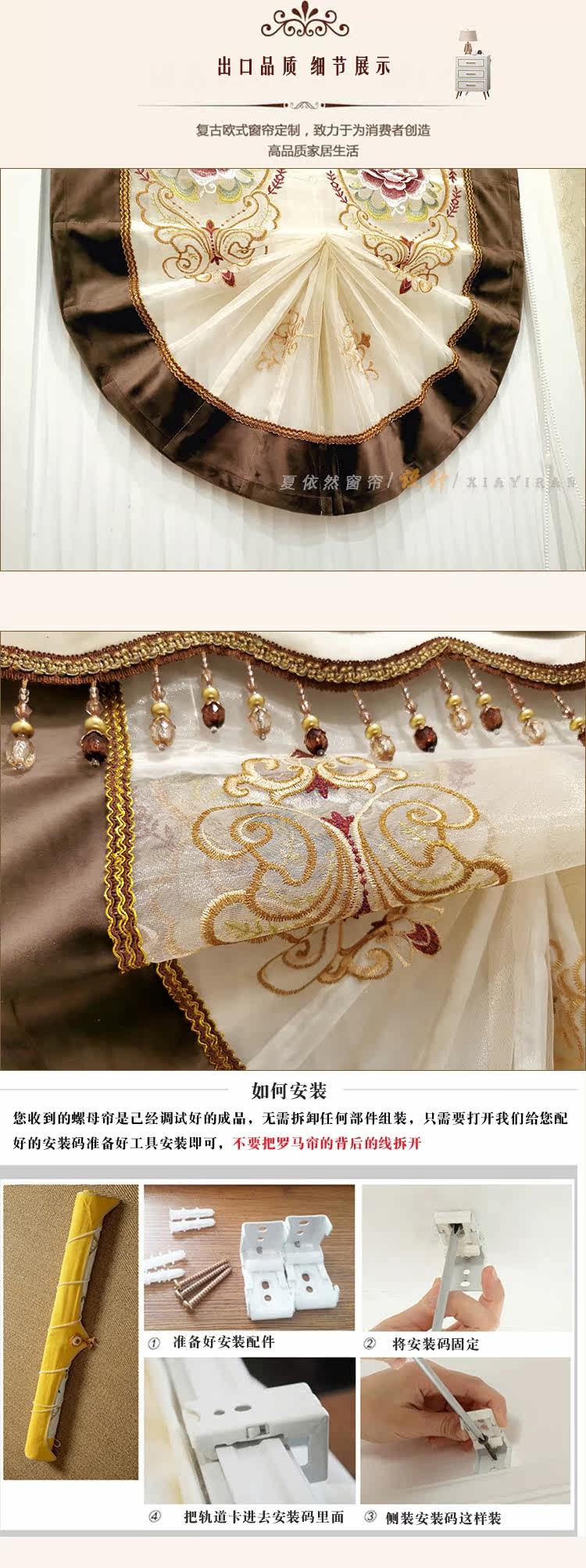Прежде всего, шторы - это индивидуальные продукты. Я надеюсь, что вы сможете передать больше деталей, цвета, тканей, ингредиентов, методов и качества продукции.Полиз, голова на ткани вышивки, высота 2 см искусственной ошибки, ошибка ширины римской ширины ширины 1см. Полем
