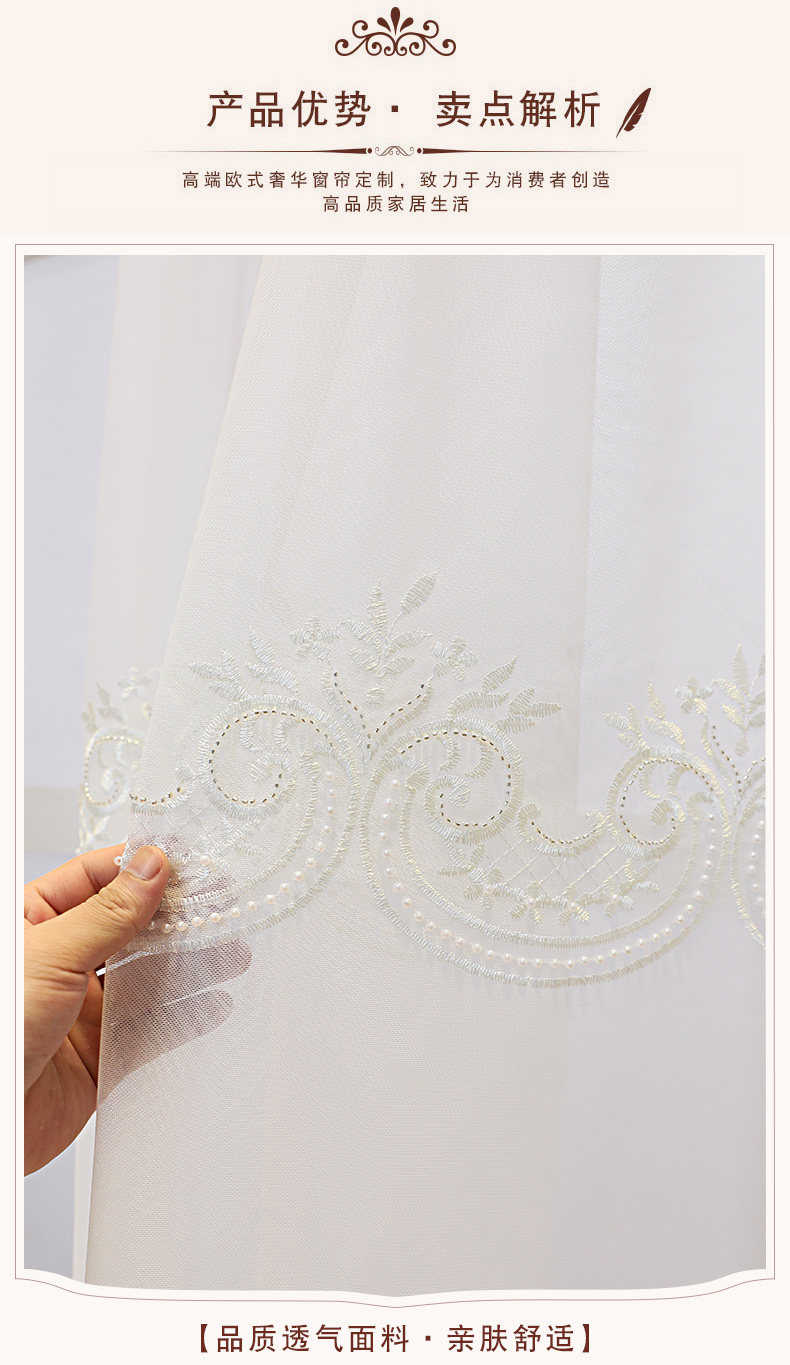 Простая, современная, легкая и роскошная белая марлевая занавеска, марлевая занавеска с жемчужной вышивкой, гостиная, спальня, затемненный балкон, защита от солнца и солнцезащитный козырек.
