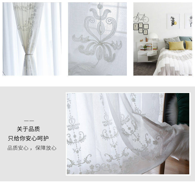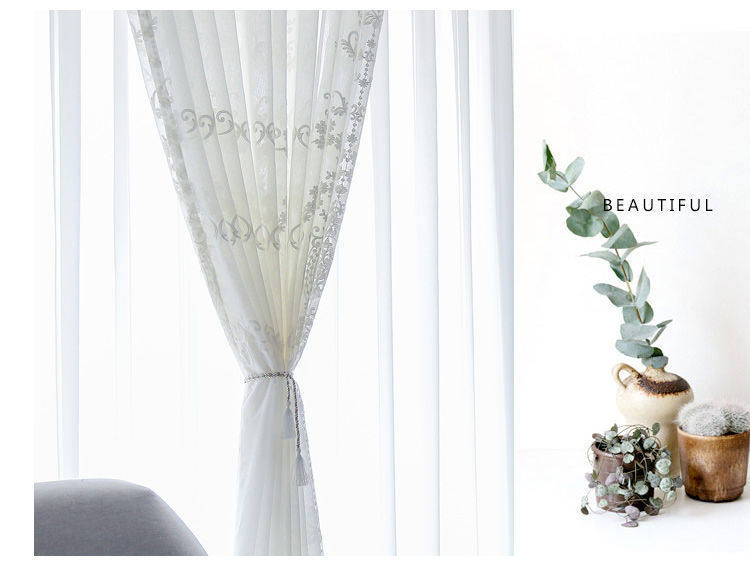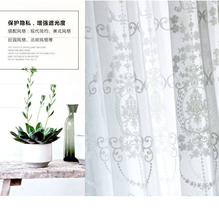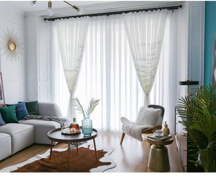 Скандинавская белая штора, ткань для гостиной, скандинавский стиль, простой и элегантный дизайн, европейский стиль, с вышивкой