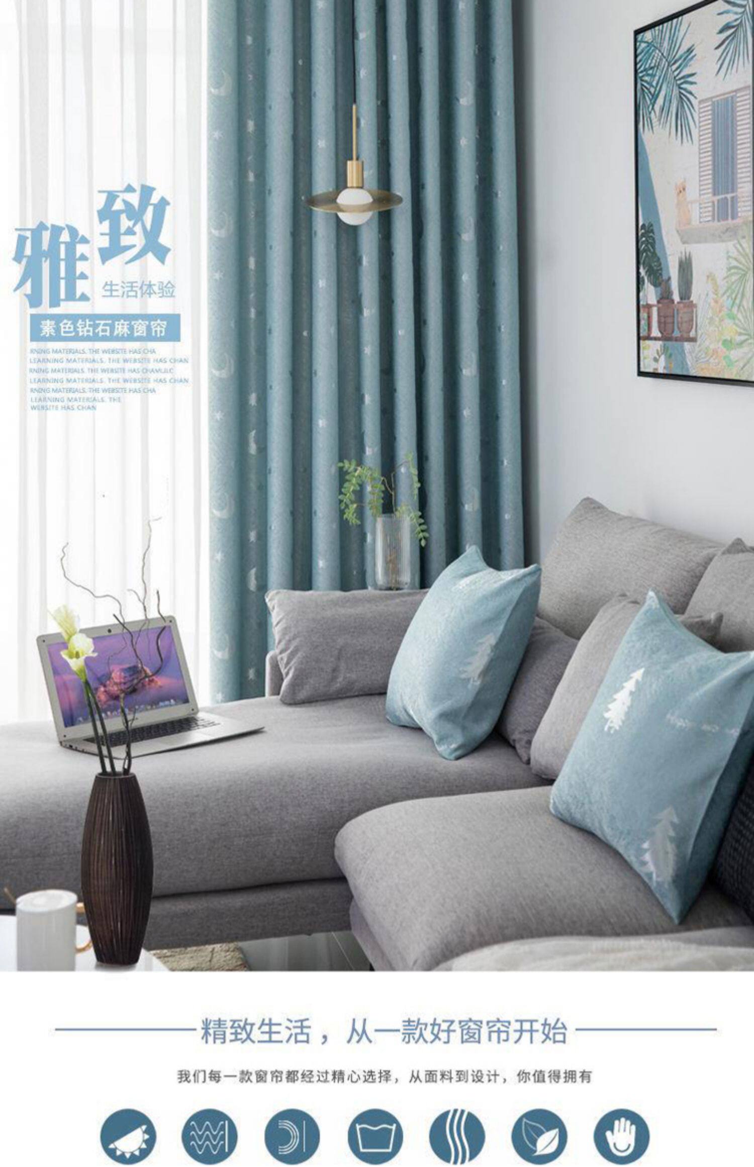 Утолщенная занавесная пряжка -Бесплатная установка Полнопроницаемая ткань Северная Европейская спальня может быть настроена и очищена ликвидация римского стержня