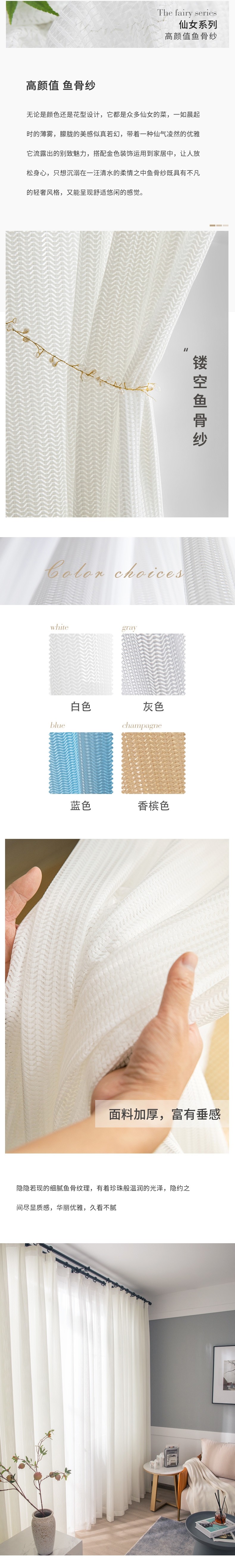 Рыбная костная занавеска. Светло -переносная легкая и неподготовленная гостиная без удара белый песок плавучий окон