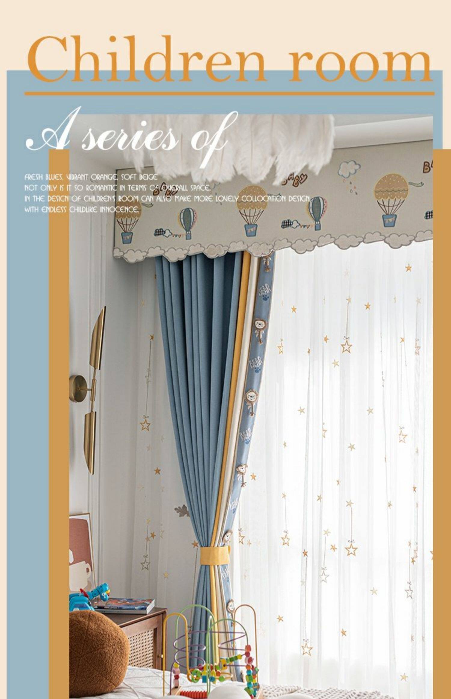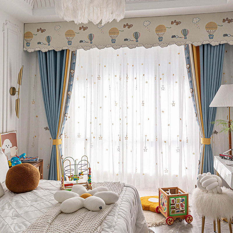 Детский мультяшный воздушный шар, синяя штора для мальчиков, ткань для спальни, облако