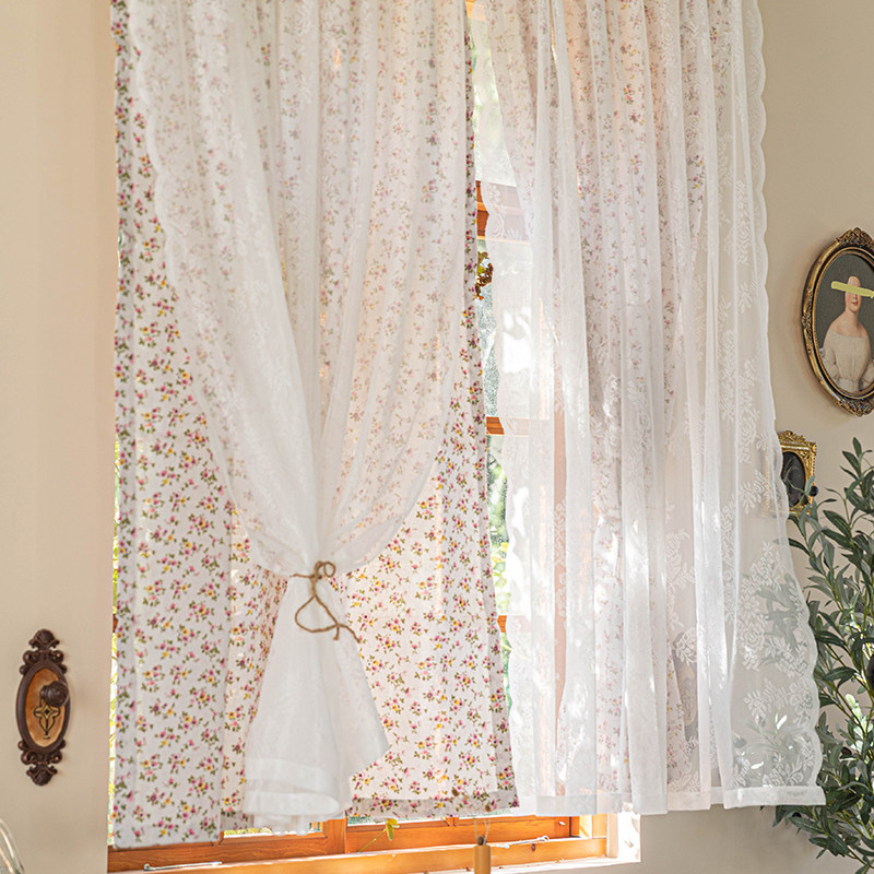 Сельская кружевная ретро ткань, штора, в американском стиле, цветочный принт