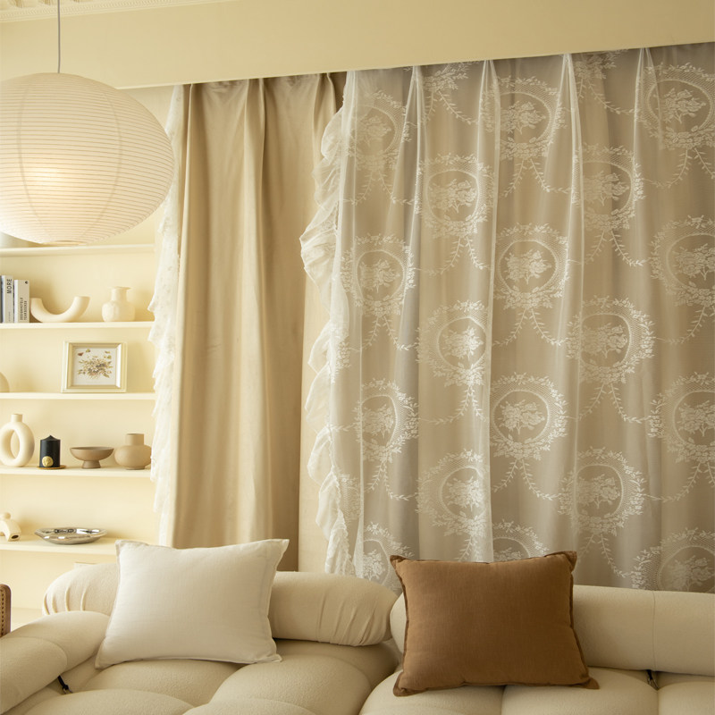 Ретро сливочная брендовая бархатная ткань для принцессы для гостиной, штора, французский стиль, делается под заказ