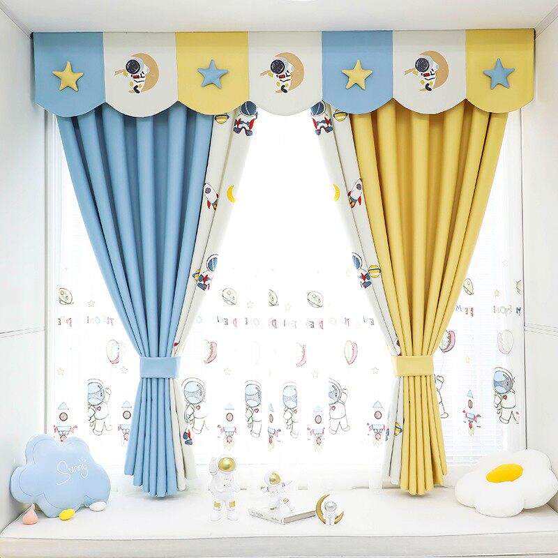 Детская ткань для мальчиков, мультяшный космонавт, штора для спальни, из хлопка и льна