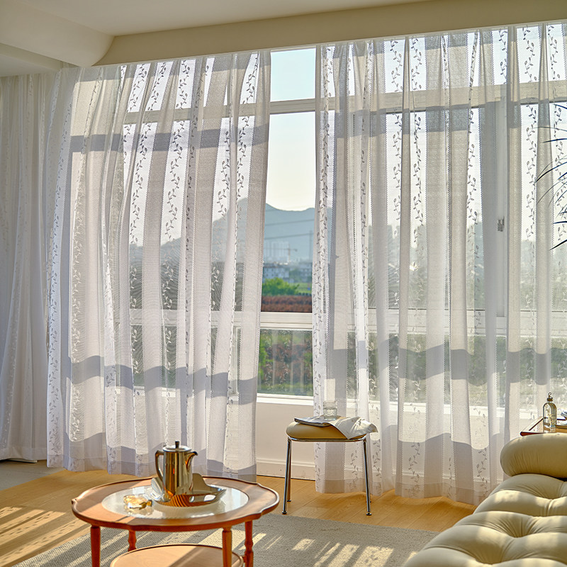 Маленькая свежая вышитая занавеска, гостиная балконного эркуационного окна, светопрозрачная белая белая вуаль