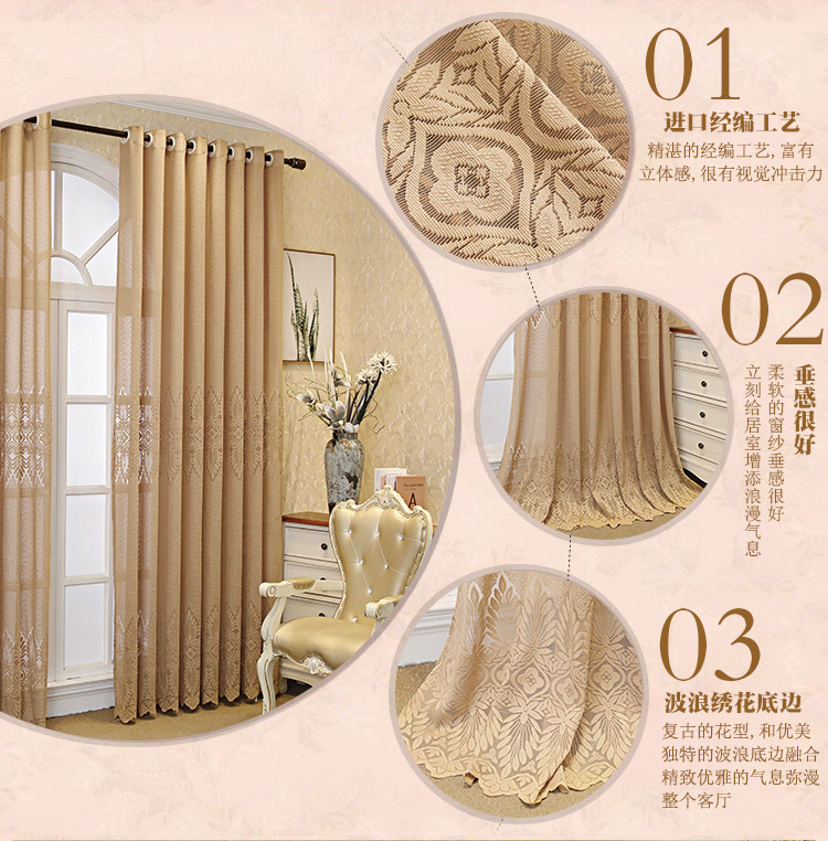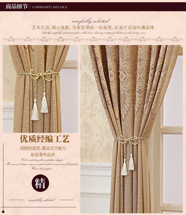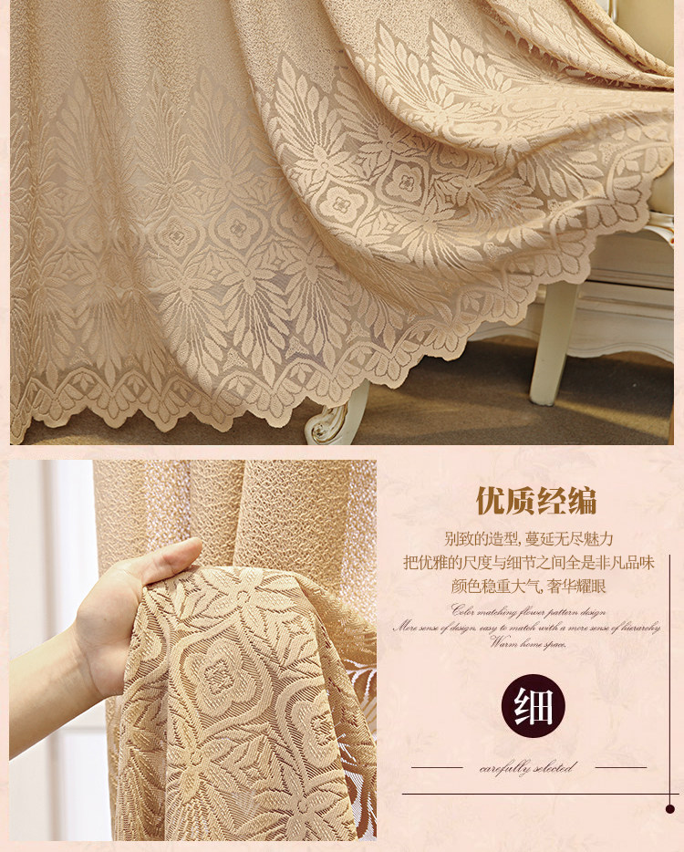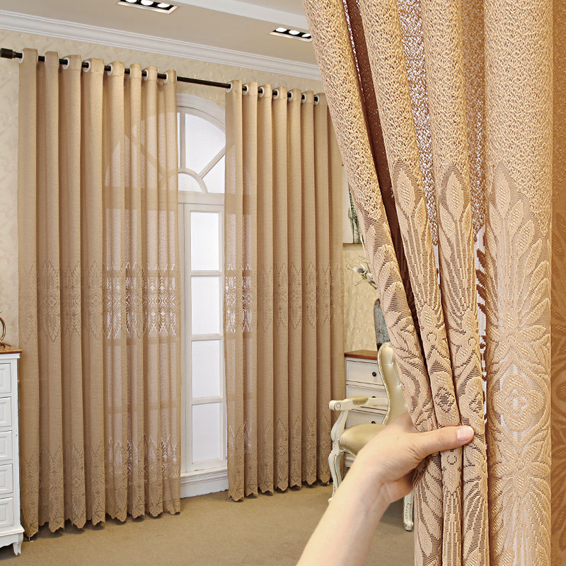 Кофейная цветная ткань для гостиной, штора на липучке, европейский стиль