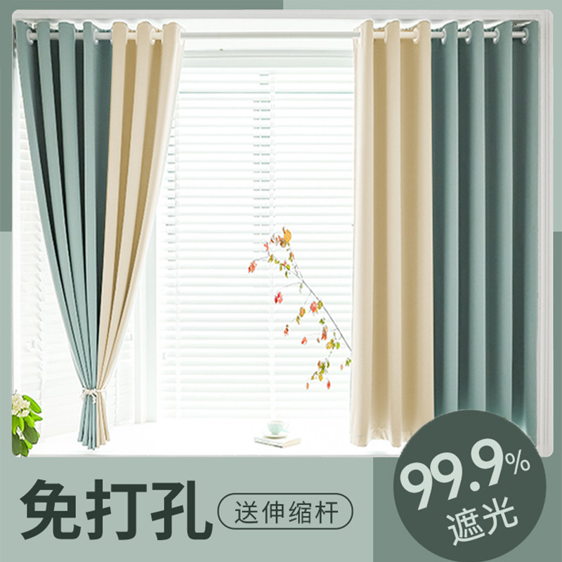 Полно -обрабатывая занавеска для спальни Бесплатная Установка для перемешивания и выдвижной стержень. Набор простых бурных окон 2022 Новая ткань затенения