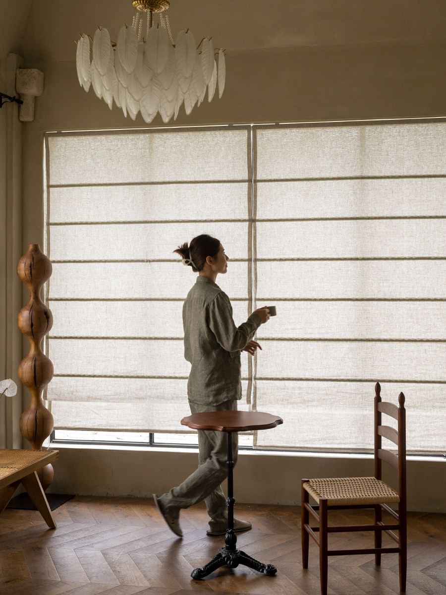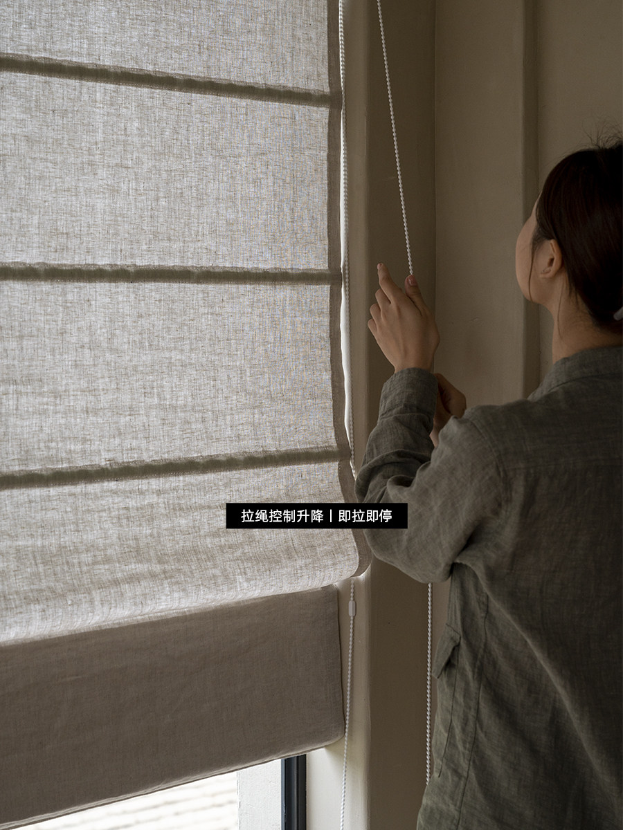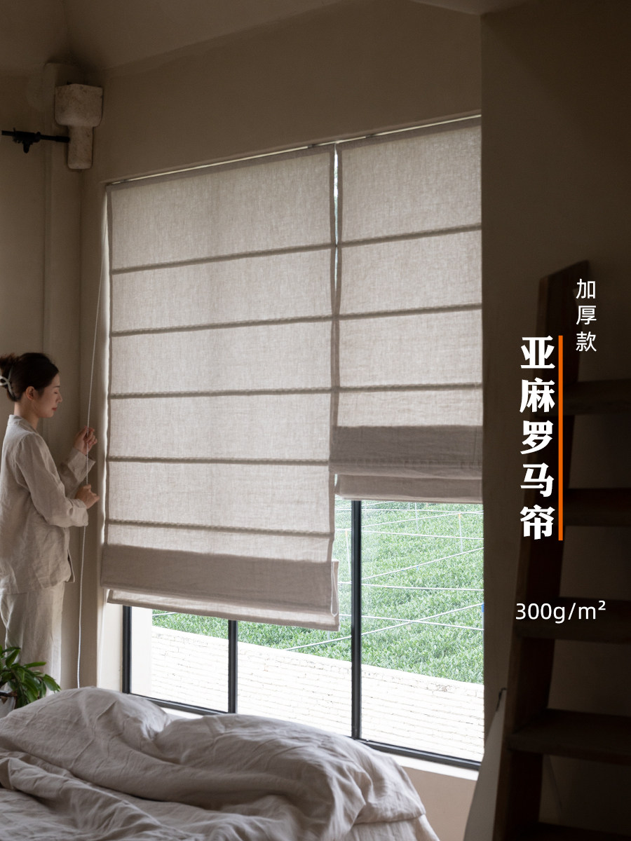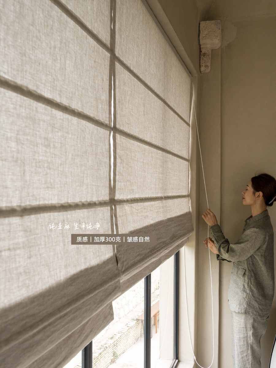 Новый утолщенный 300 г чистой линси, римская занавеска, в стиле японского стиля китайского стиля китайского залива, настройка занавеса, настройка занавеса