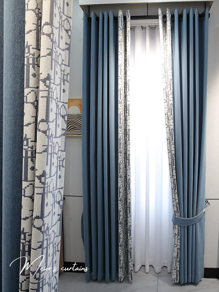 Синяя современная ткань для гостиной, коллекция 2023, простой и элегантный дизайн, делается под заказ