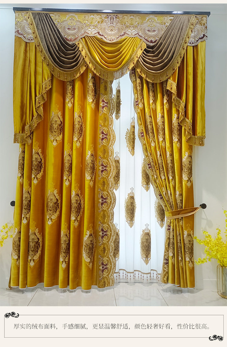 Вилла, роскошная желтая бархатная ткань для гостиной для спальни, новая коллекция, европейский стиль, увеличенная толщина, с вышивкой