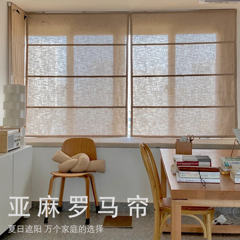 Японский стиль Zen леневой римский занавес простой прозрачный пропуск света, неподготовленная катящаяся занавес хлопок, конопля, засоренная занавес и складная занавеса в семье