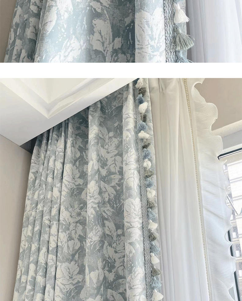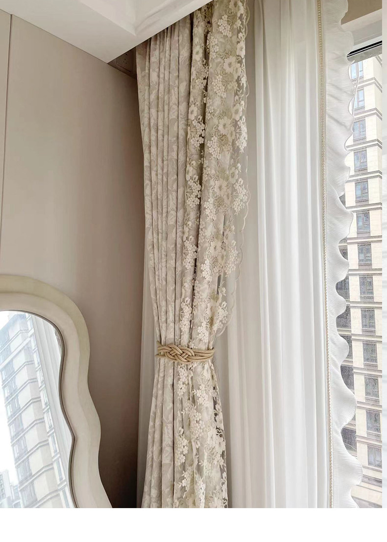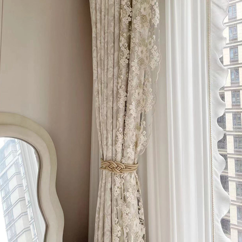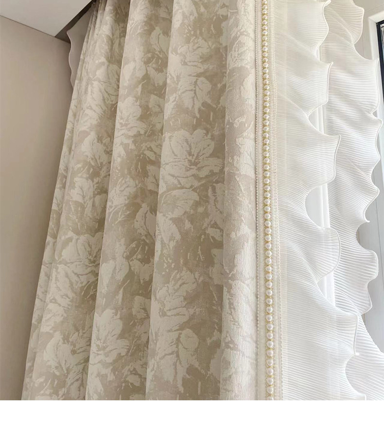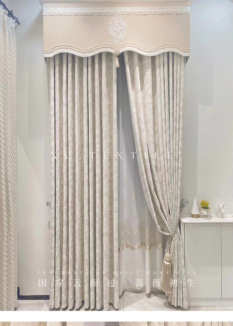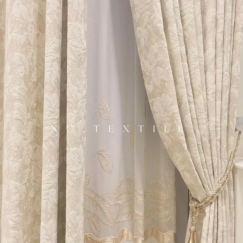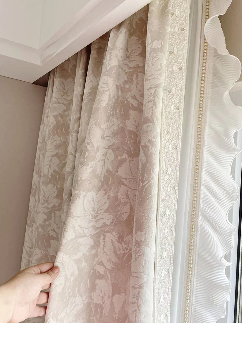 布源怡家 Французский кремовый ветер романтический рельеф Chenille Высокая точная занавеска густая и новая модель Premium 2024