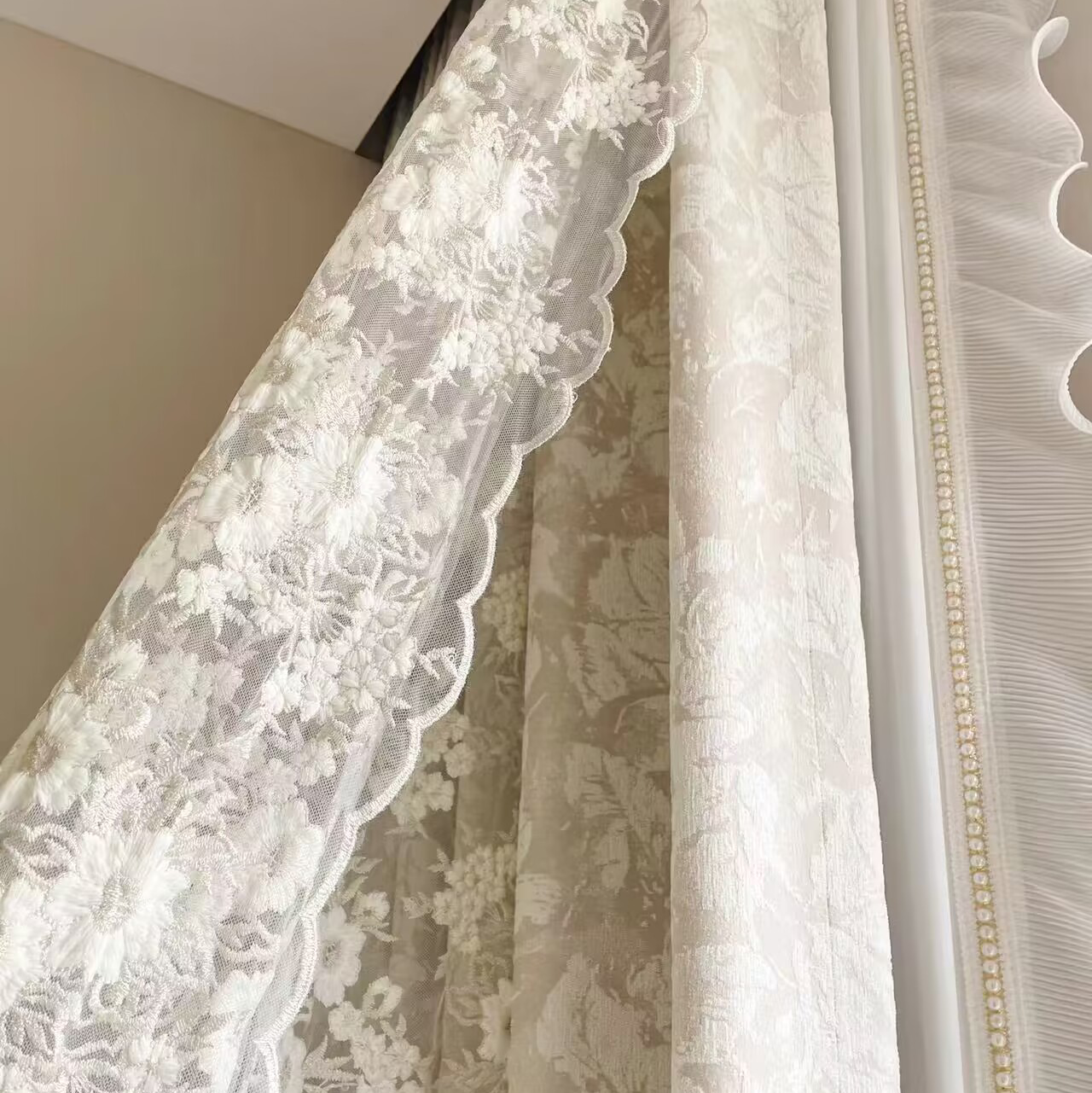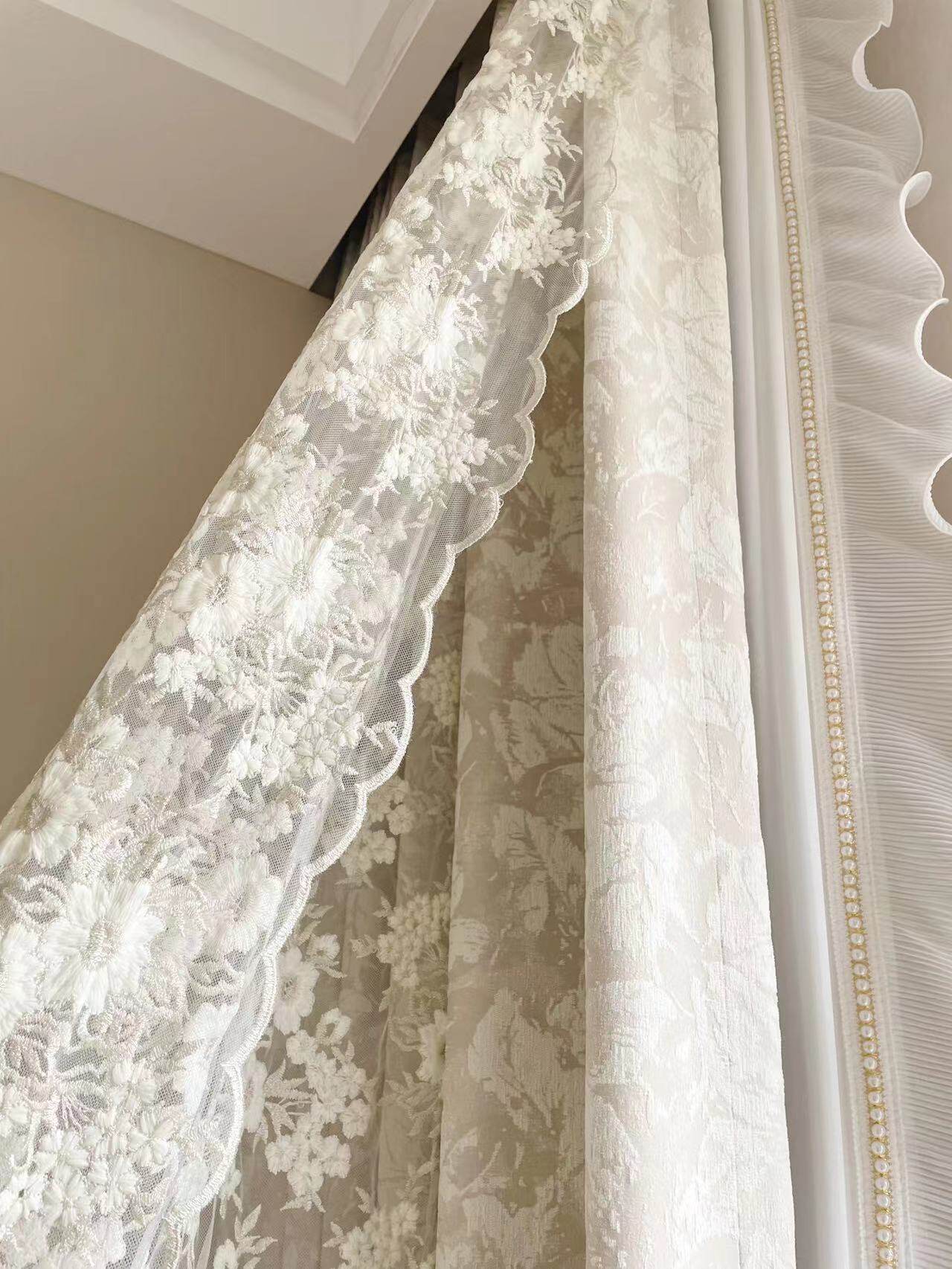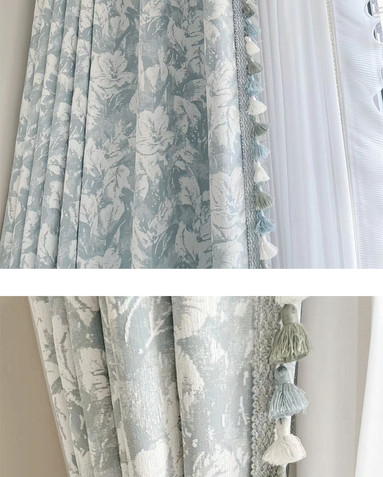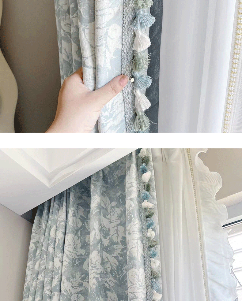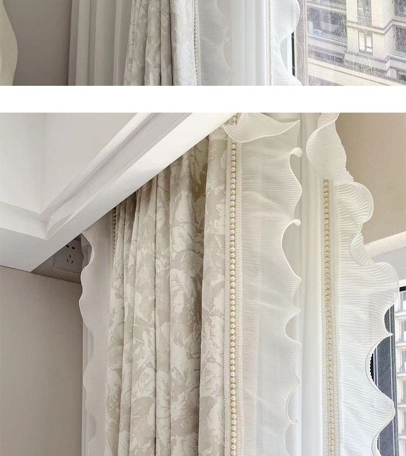 布源怡家 Французский кремовый ветер романтический рельеф Chenille Высокая точная занавеска густая и новая модель Premium 2024