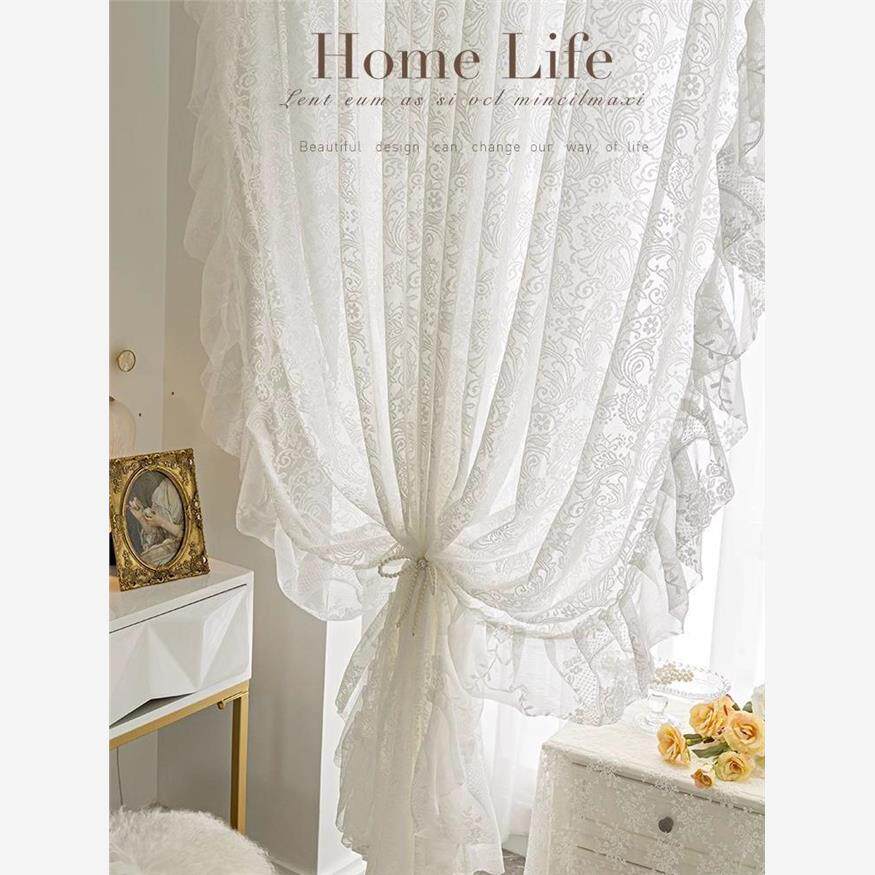 Французский Rocke City Lise Make увеличивает лотос листовой кружево сгущенный белый экран экрана экрана занавес балкон наполовину наполовину занавес