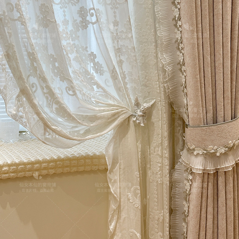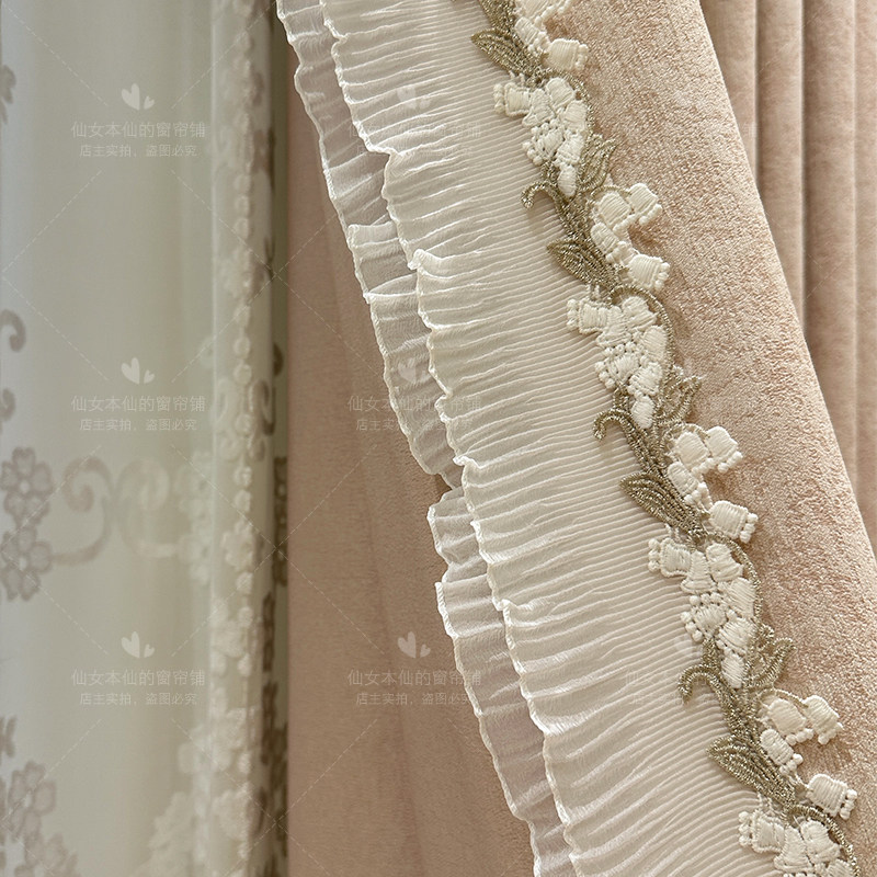 Розовая ткань, кружевная марлевая штора, французский стиль, делается под заказ