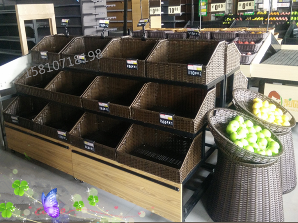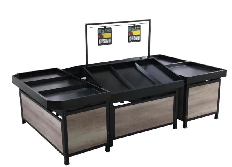 Три -слоистые овощи и фрукты дисплеи Параллельные полки супермаркета