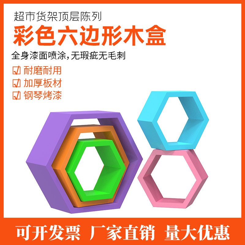 Фат Донглай Супермаркет дисплей деревянная коробка Цвета шестиугольной полки шестиугольный деревянный рамный дисплей