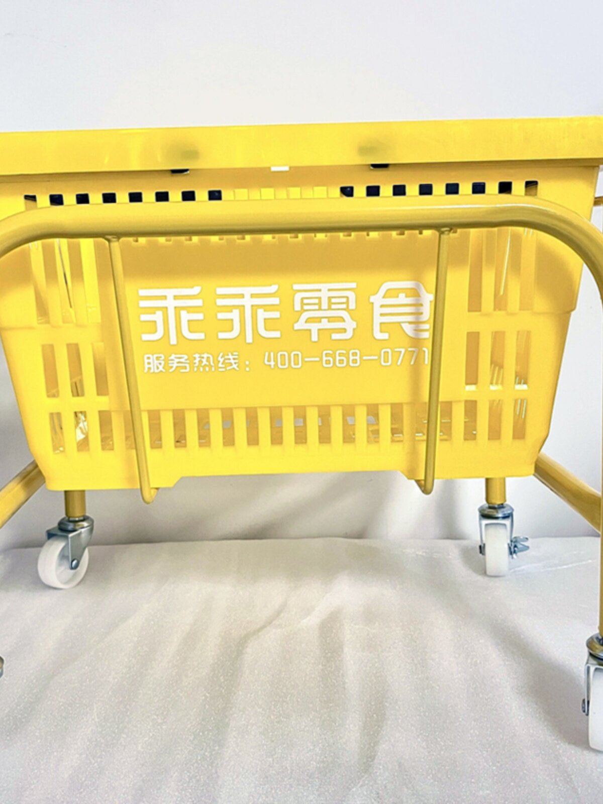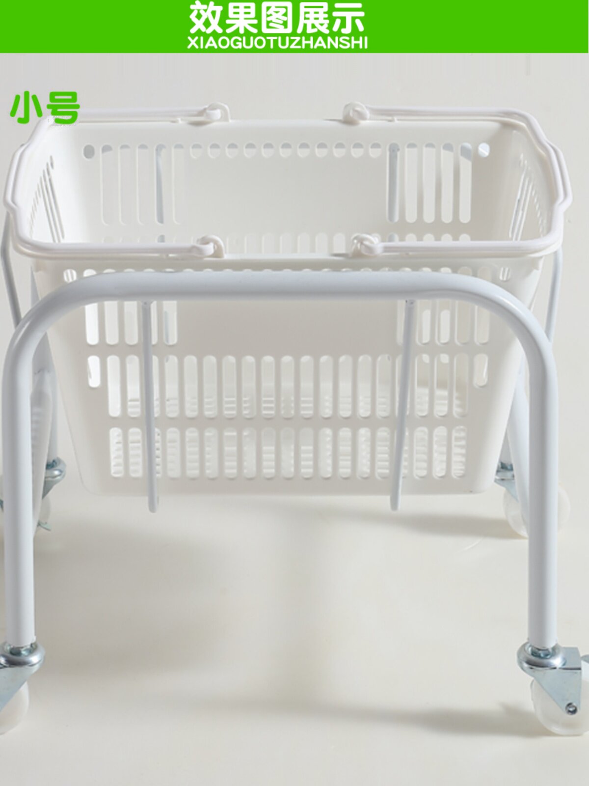 Подставка для ручной корзины с колесиками Стеллаж для хранения корзины для покупок Белая мобильная подставка для корзины для покупок Желтая основа корзины для рук