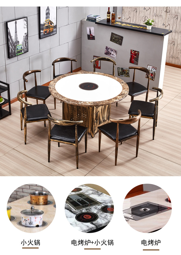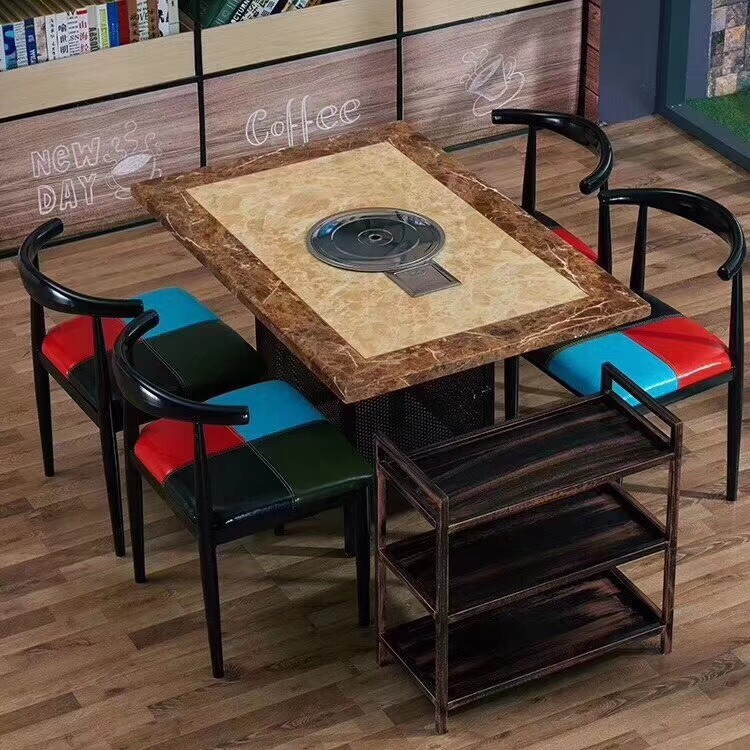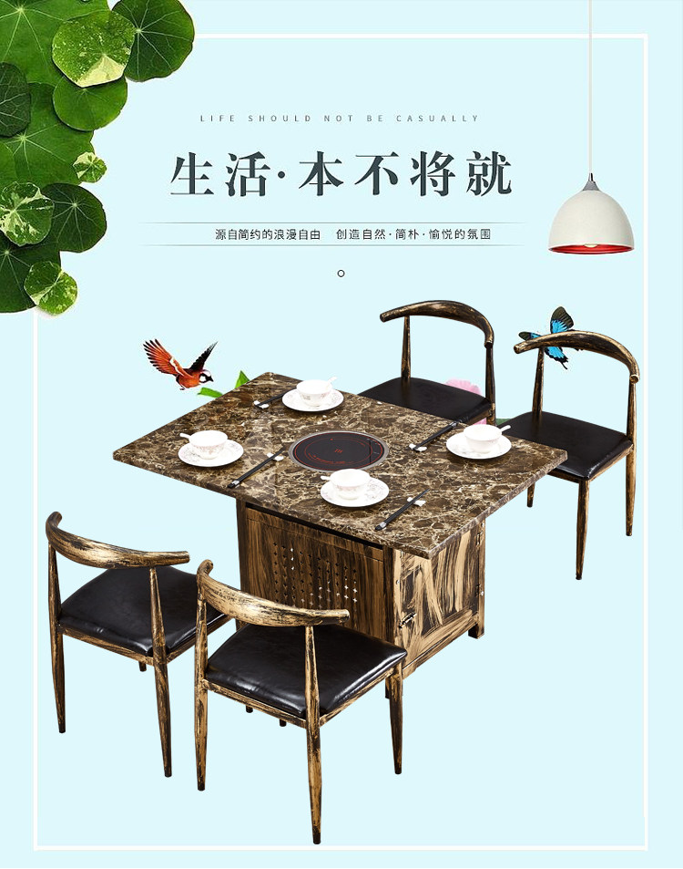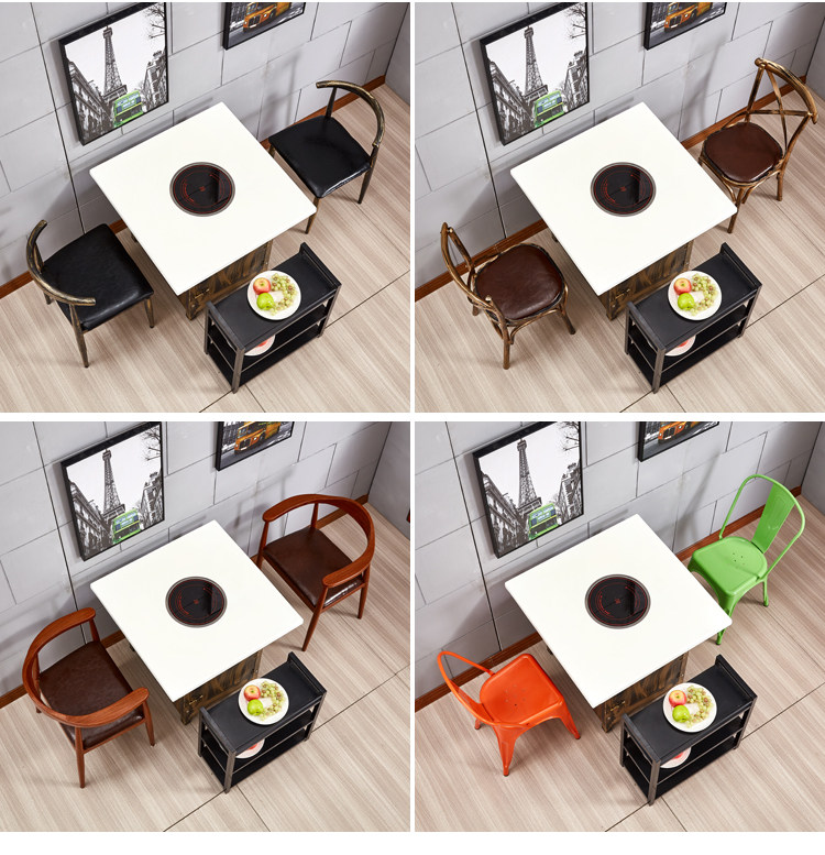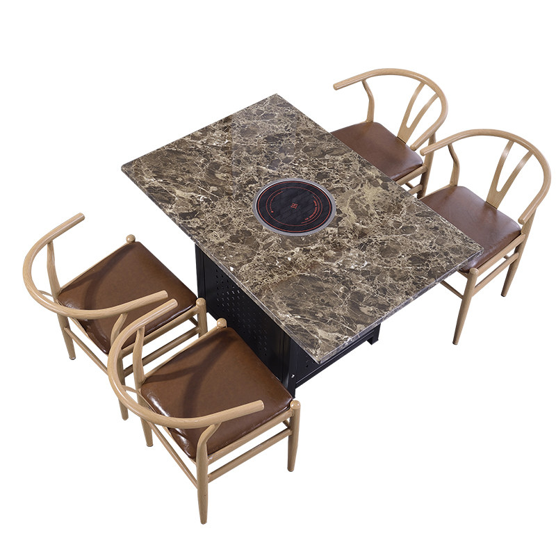 Столы Hotpot, электромагнитная плита -в одном ресторанах коммерческий сплошной древесина, без ископаемого стола, ароматные мраморные столы и стулья.