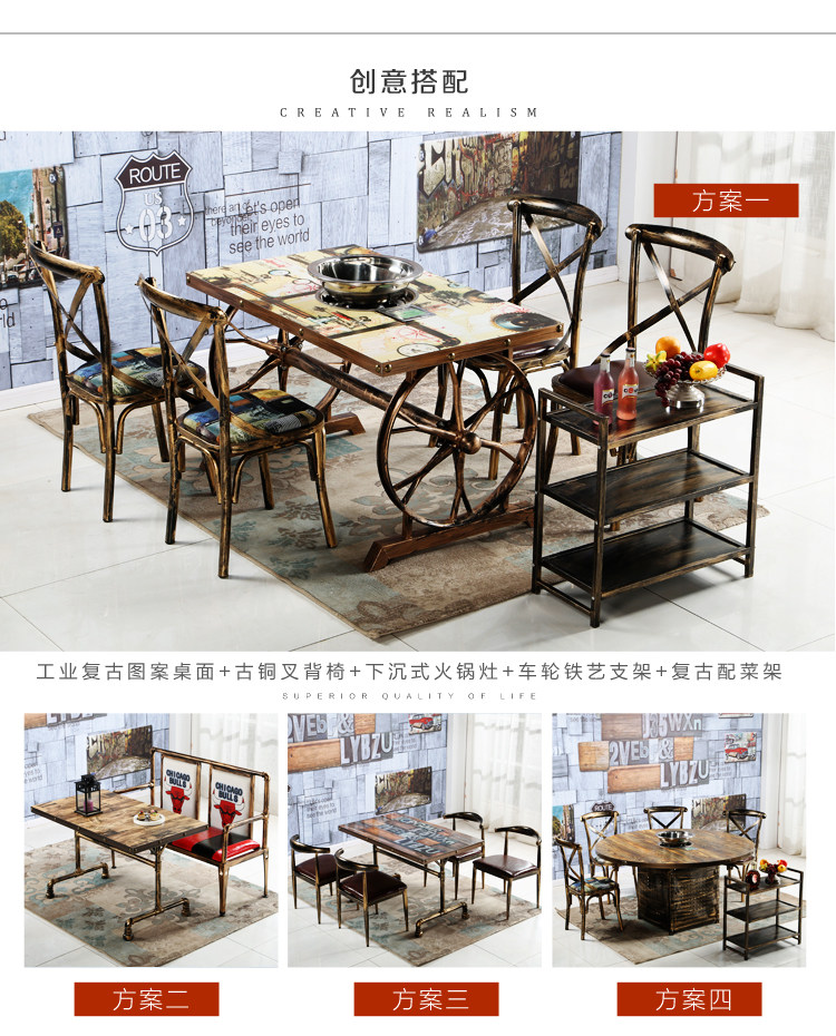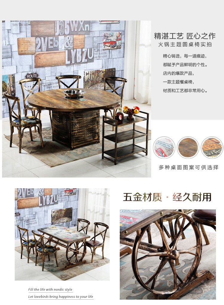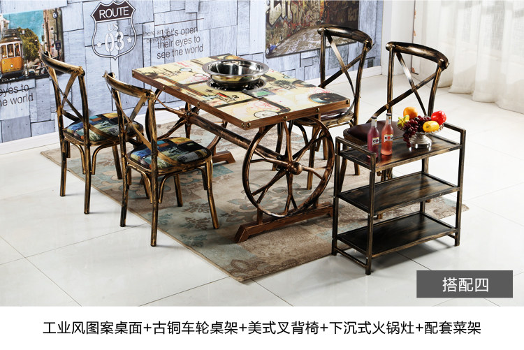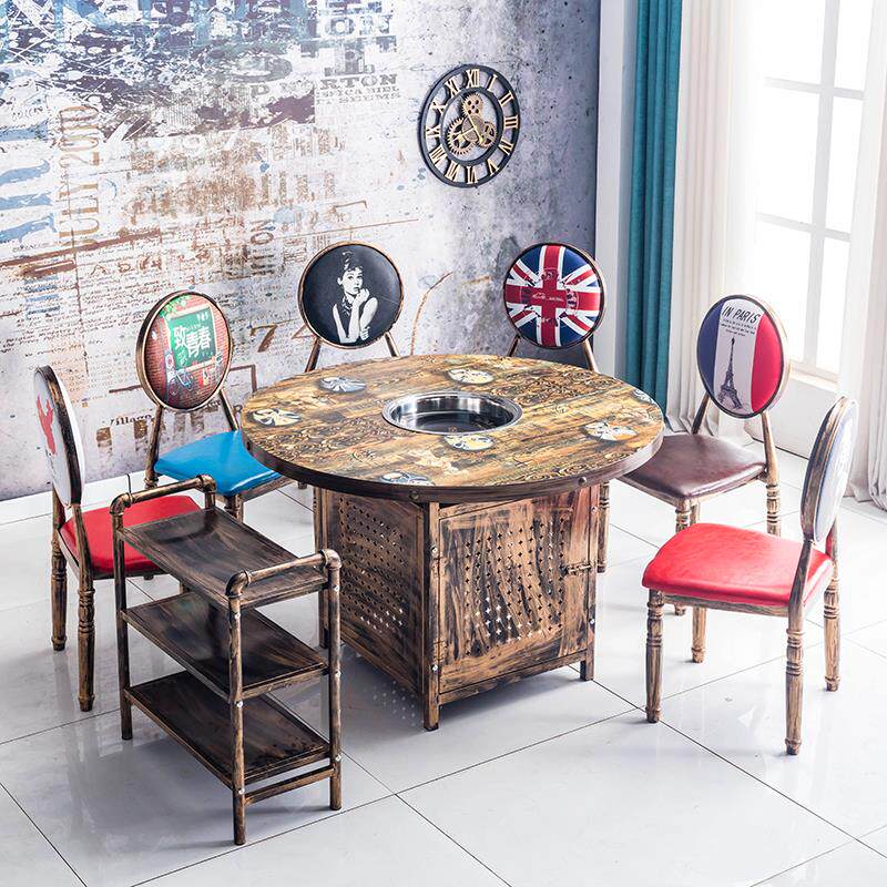 Ретро тематические ресторанные столы и стул дым -Бесплатная электромагнитная плита шампуры, коммерческие столы для стола в ресторане Hotpot.
