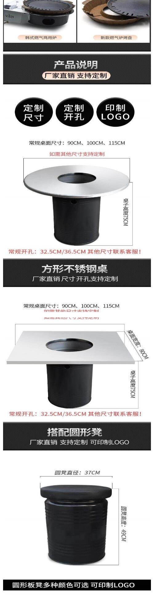 Корейский стол для барбекю коммерческий стол для барбекю из нержавеющей стали Круглый квадратный столик для кулинарного магазина и стул Комбинированное горячее горшок стол